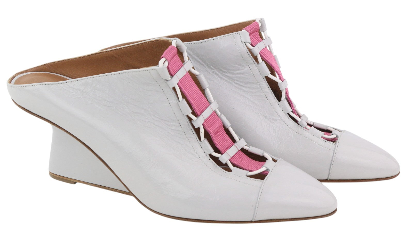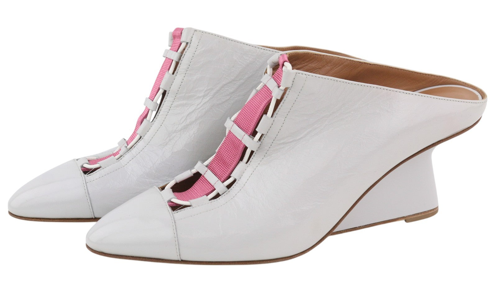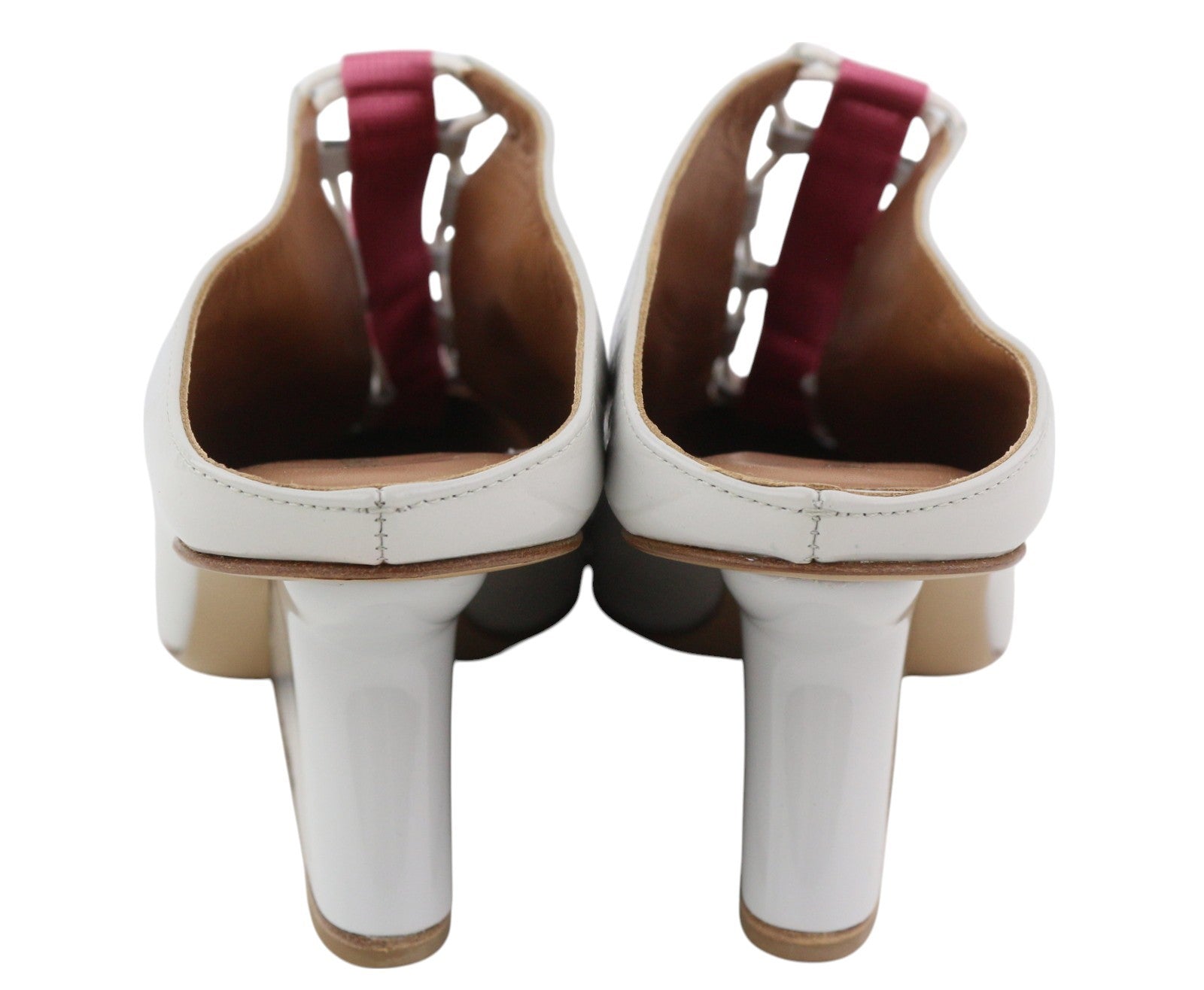 EMPORIO ARMANI X3R016 Women's Grey Leather Heels EU37 Slip-On Strap Detail