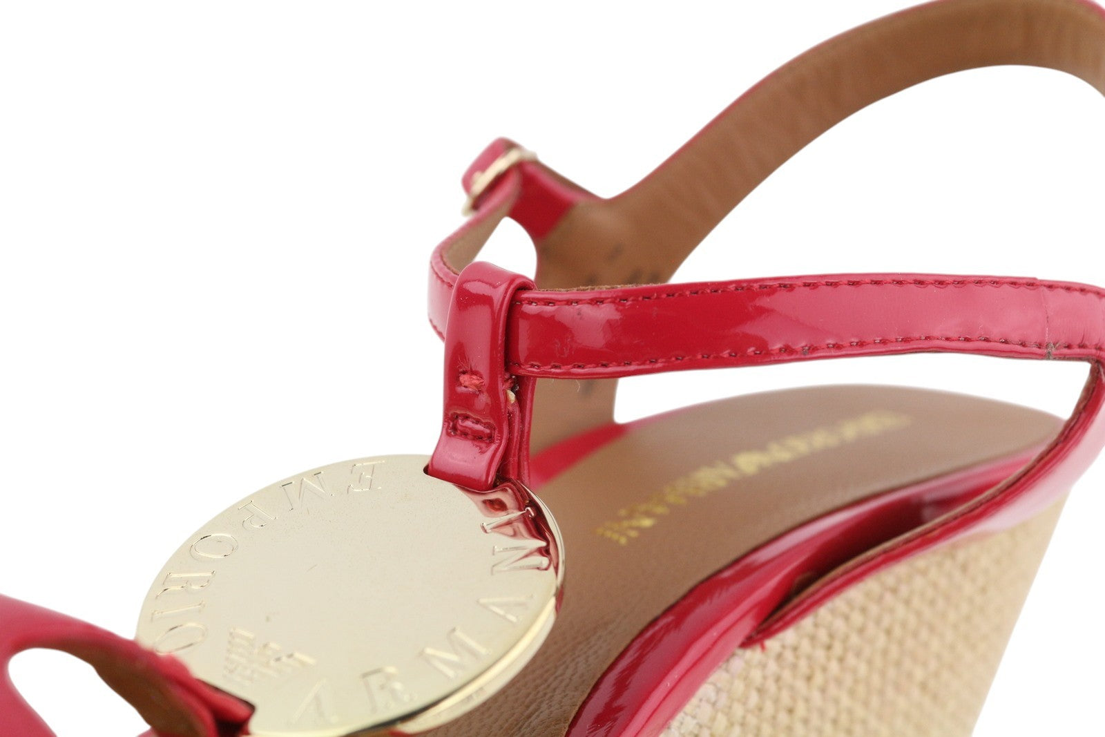 EMPORIO ARMANI X3U067 Women Sandals EU37 Red Patent Wedge Casual