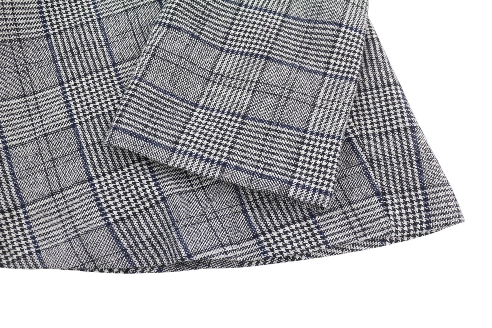 GANT Checked Flare Women Dress EU38 Grey Plaid Mini Round Neck 3/4 Sleeve