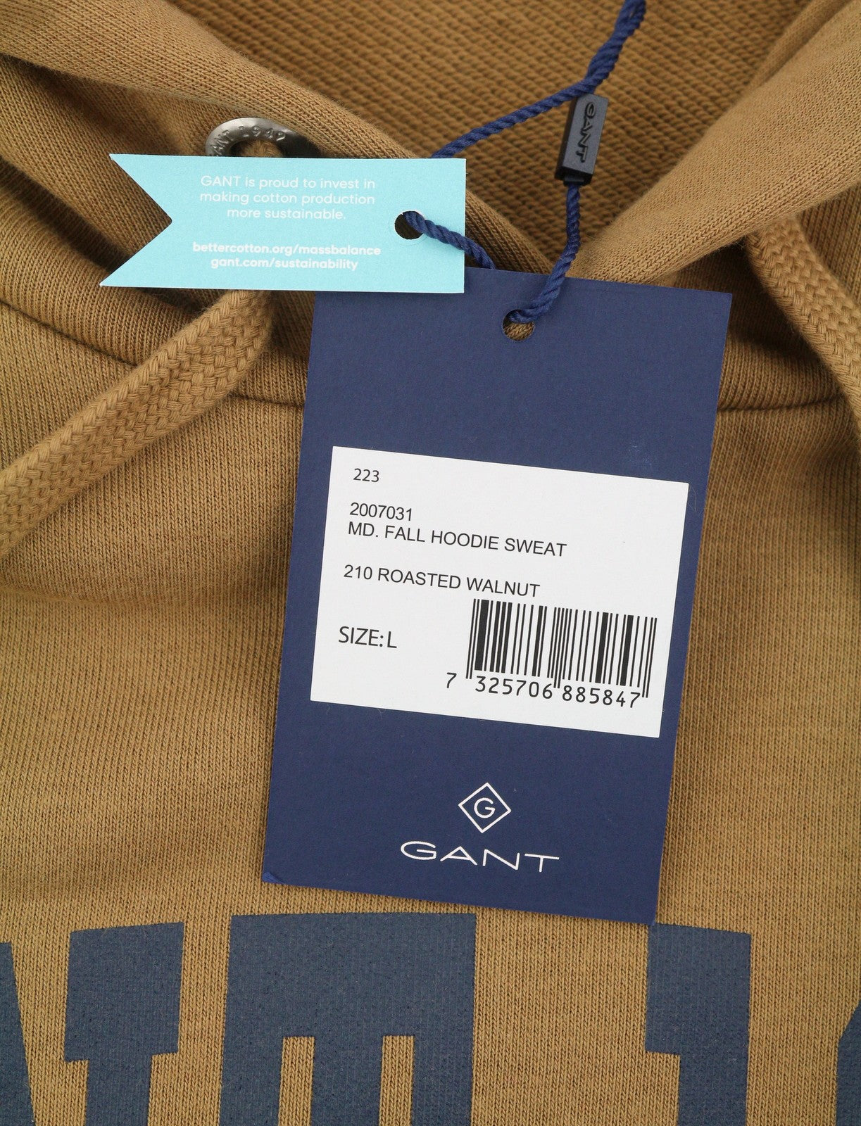 GANT Fall Sweat Men Hoodie L Roasted Walnut Front Logo Pull On