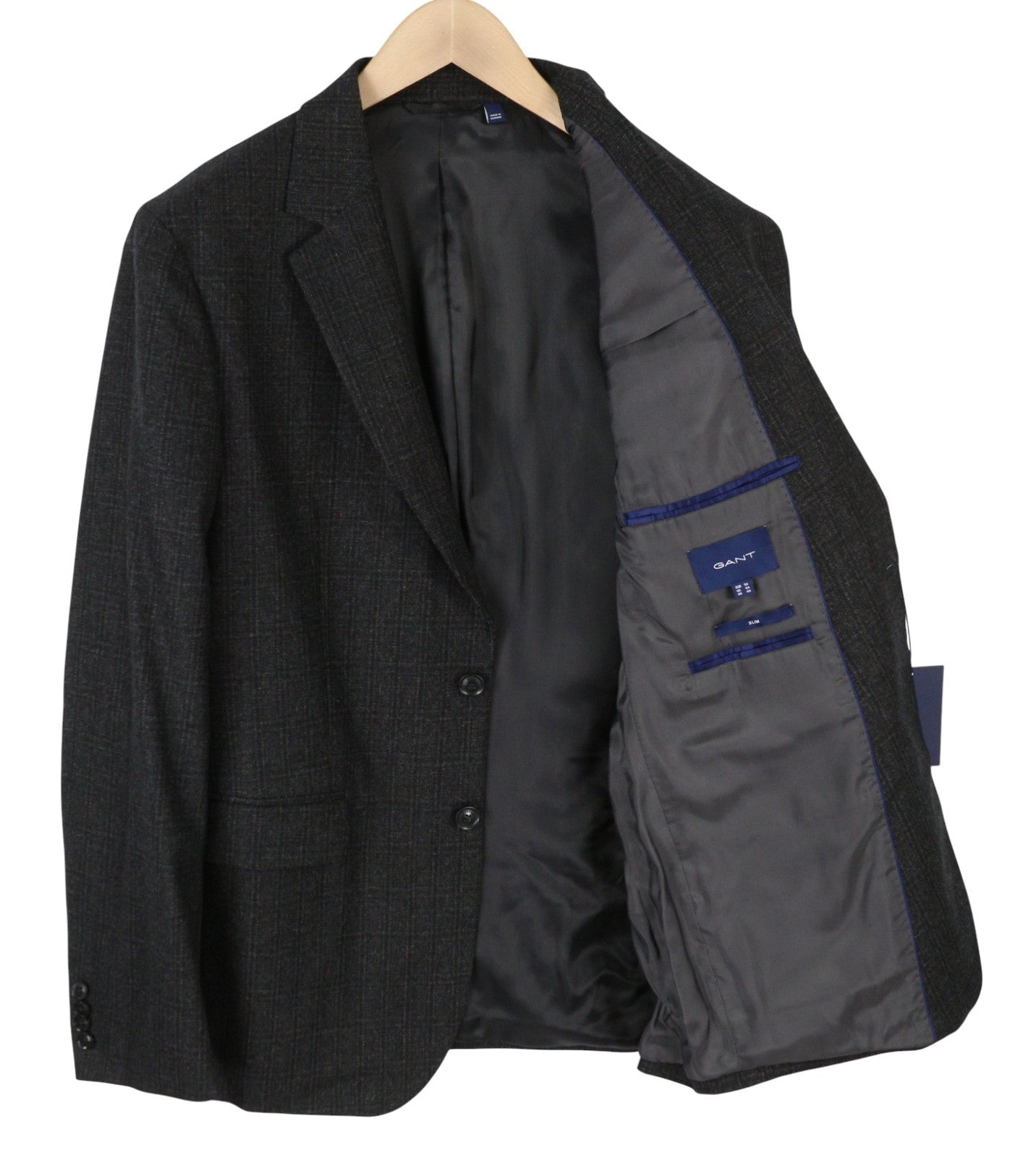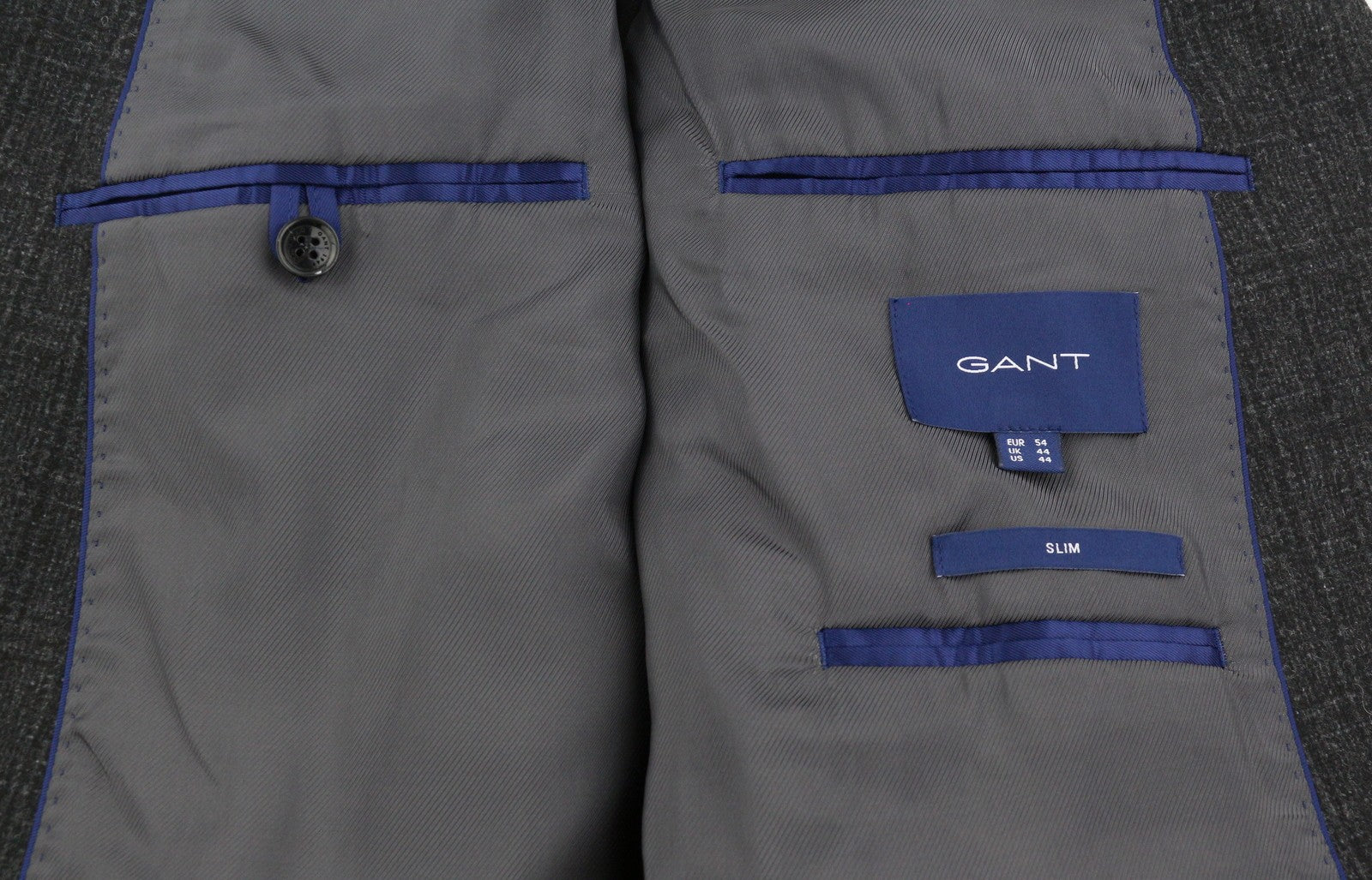 GANT flanelinis languotas vyriškas švarkas EU54 tamsiai pilko melanžo plonas vilnos mišinio švarkas su įpjova atvarte