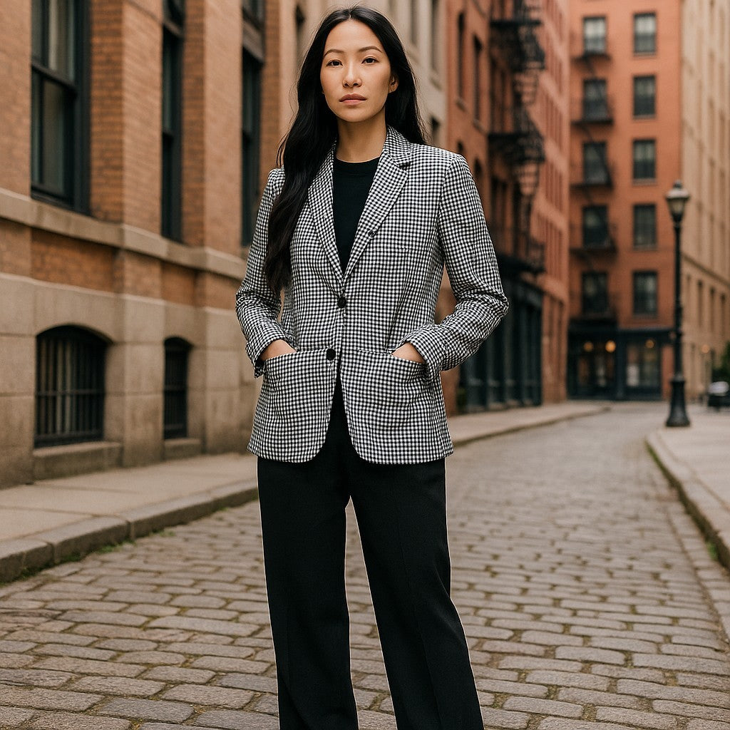 GANT Gingham Stretch Regular Women Blazer EU38 Blue Plaid Single Breasted Notch