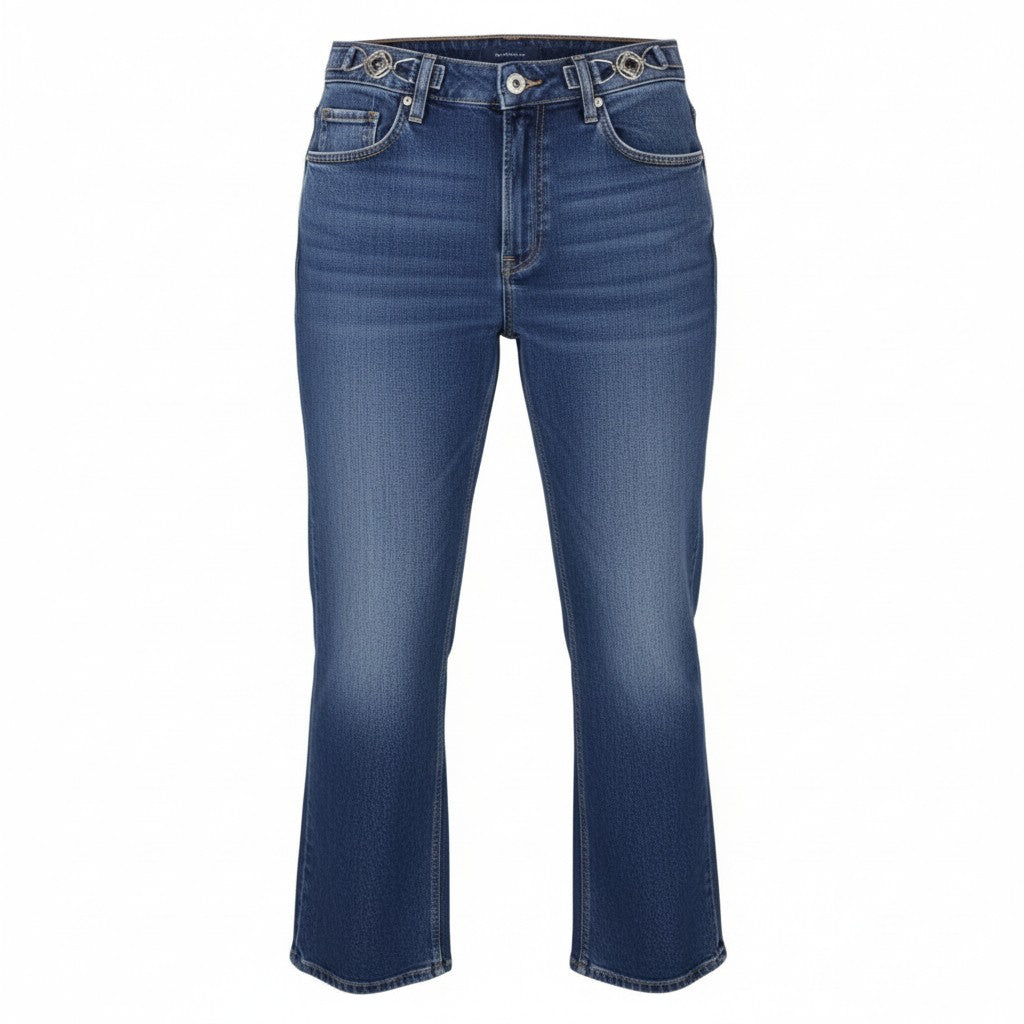 GANT Icon G Hw Flare Women Jeans W33 Mid Blue Whiskers Faded Zip Fly