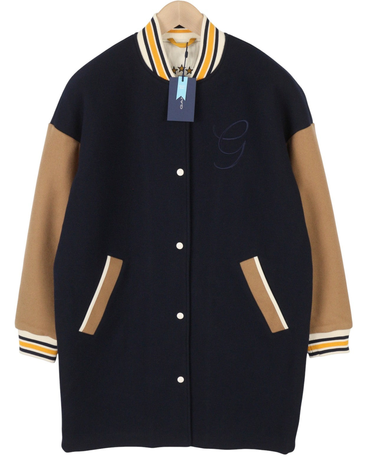 GANT ilgas moteriškas paltas M su tamsiai mėlyna vilnos mišinio izoliuota striuke su spaudėmis bomberyje