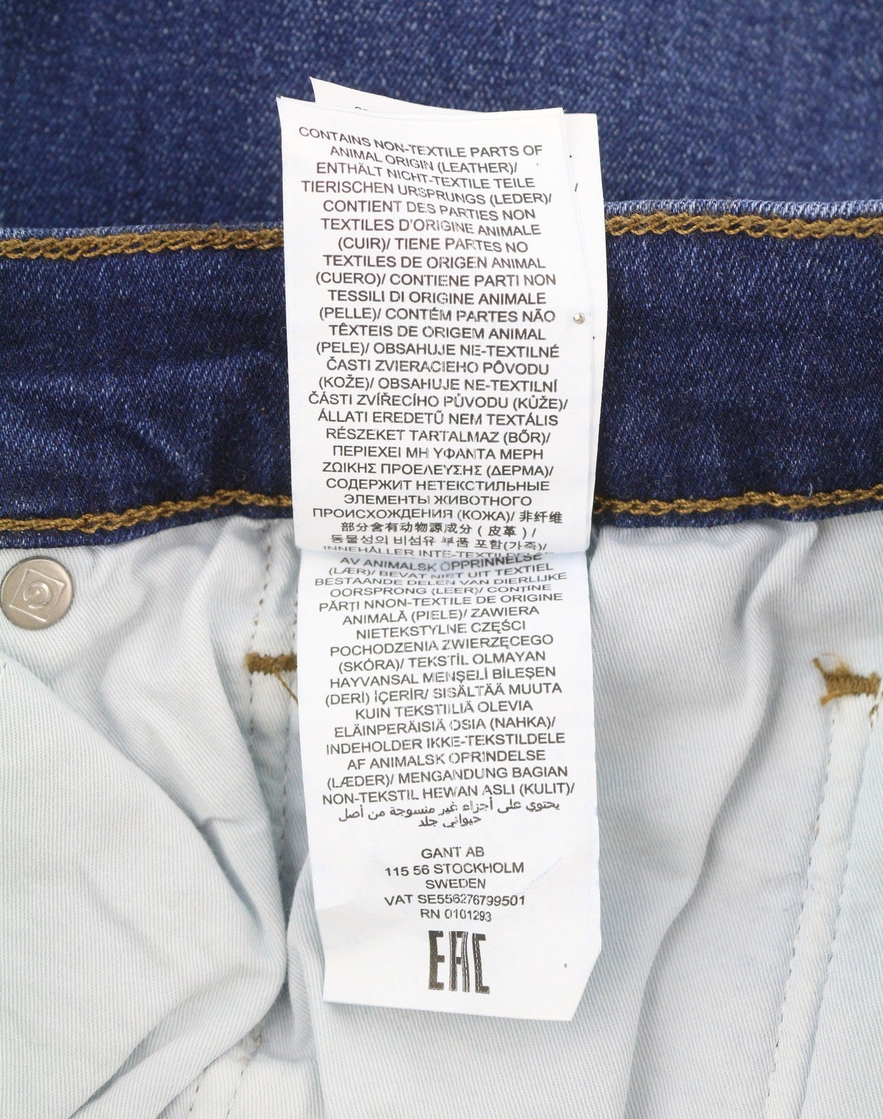 GANT Maxen Retro Shield vyriški džinsai W34/L36 tamsiai mėlyni ūsuoti, aptempti