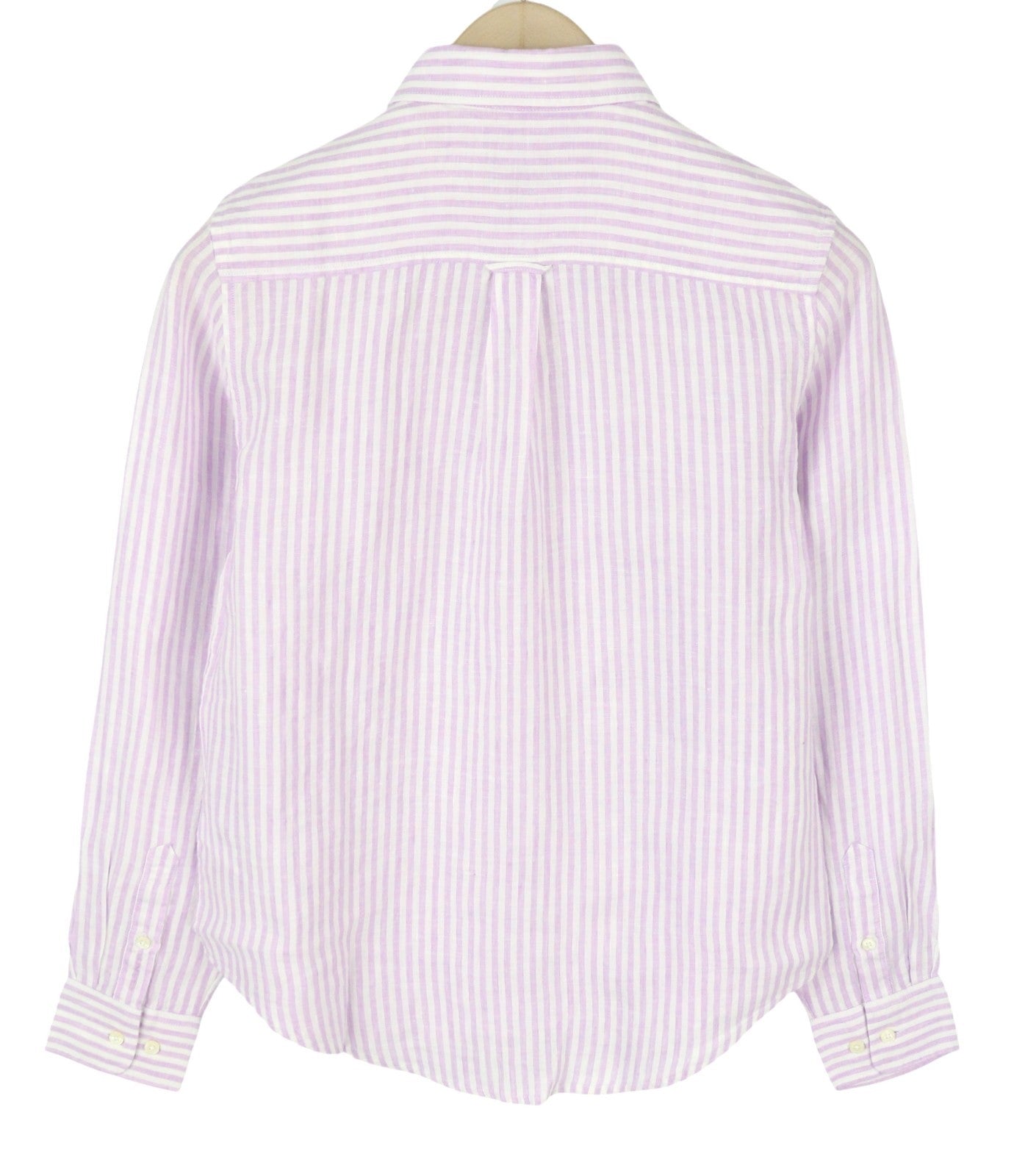 GANT Reg Linen Stripe Women Shirt EU34 Crocus Purple Button-Up Spread Neck