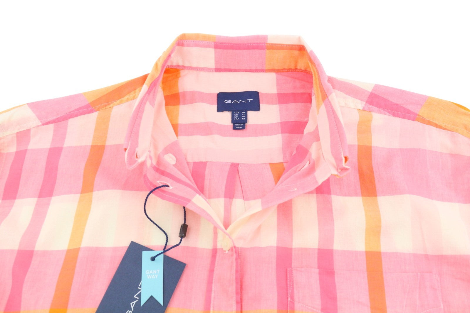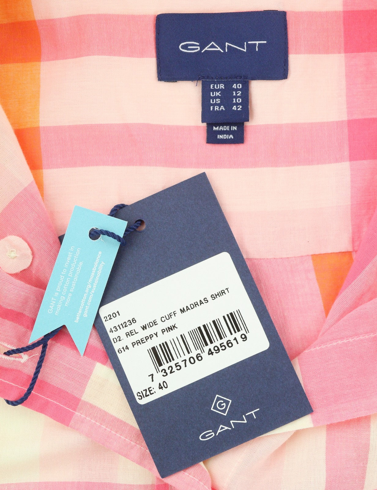 GANT Rel Wide Cuff Madras Women Shirt EU40 Preppy Pink Button-Up Oversized