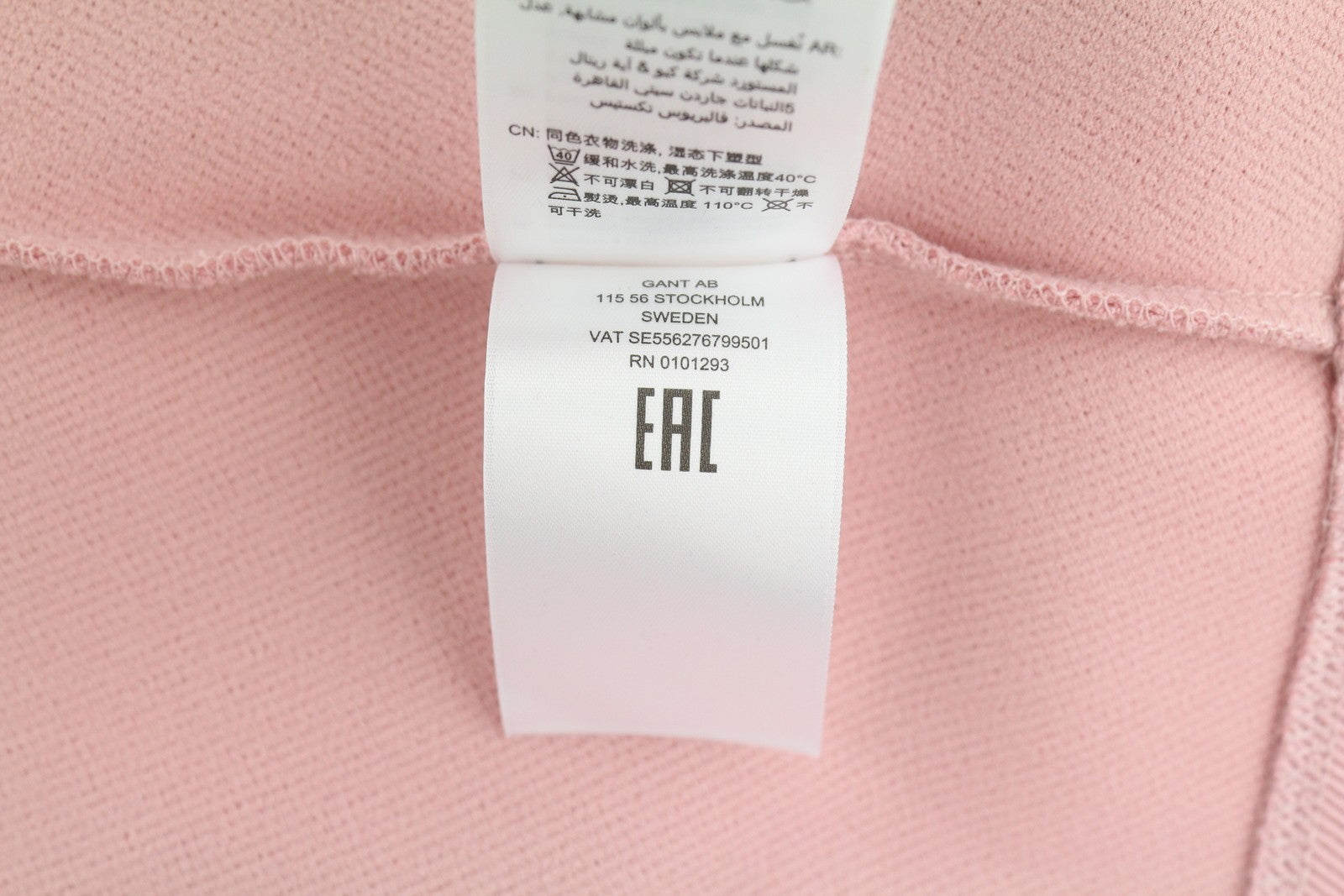 GANT Rib Structure Women's Dress XS Pink Stretch V Neck Short Sleeve Knee