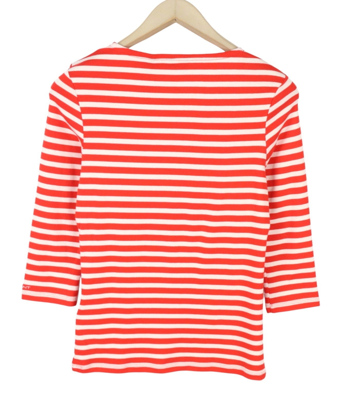 GANT Striped 1x1 Rib 3/4 Women T-Shirt S Lava Red Round Neck Tricot Stretch