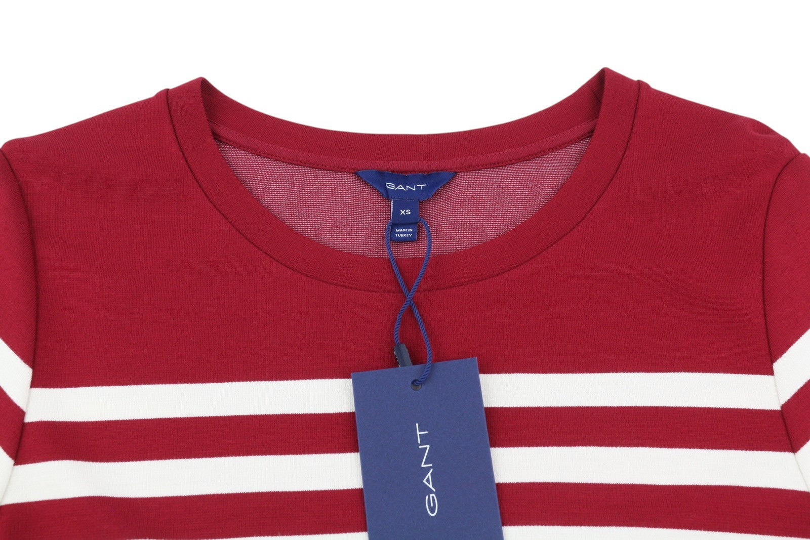 GANT dryžuota moteriška suknelė XS, bordo spalvos, apvali iškirptė, 3/4 rankovės, iki kelių.