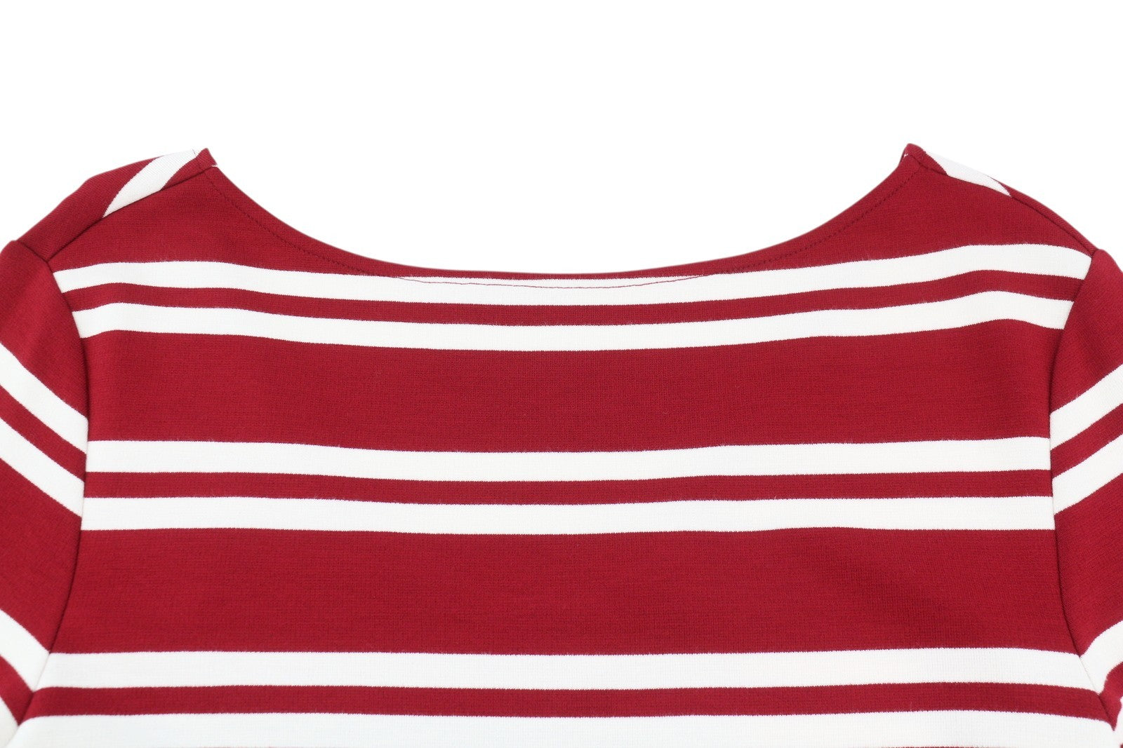 GANT Striped Women Dress S Burgundy Jersey Round Neck 3/4 Sleeve Knee-Length