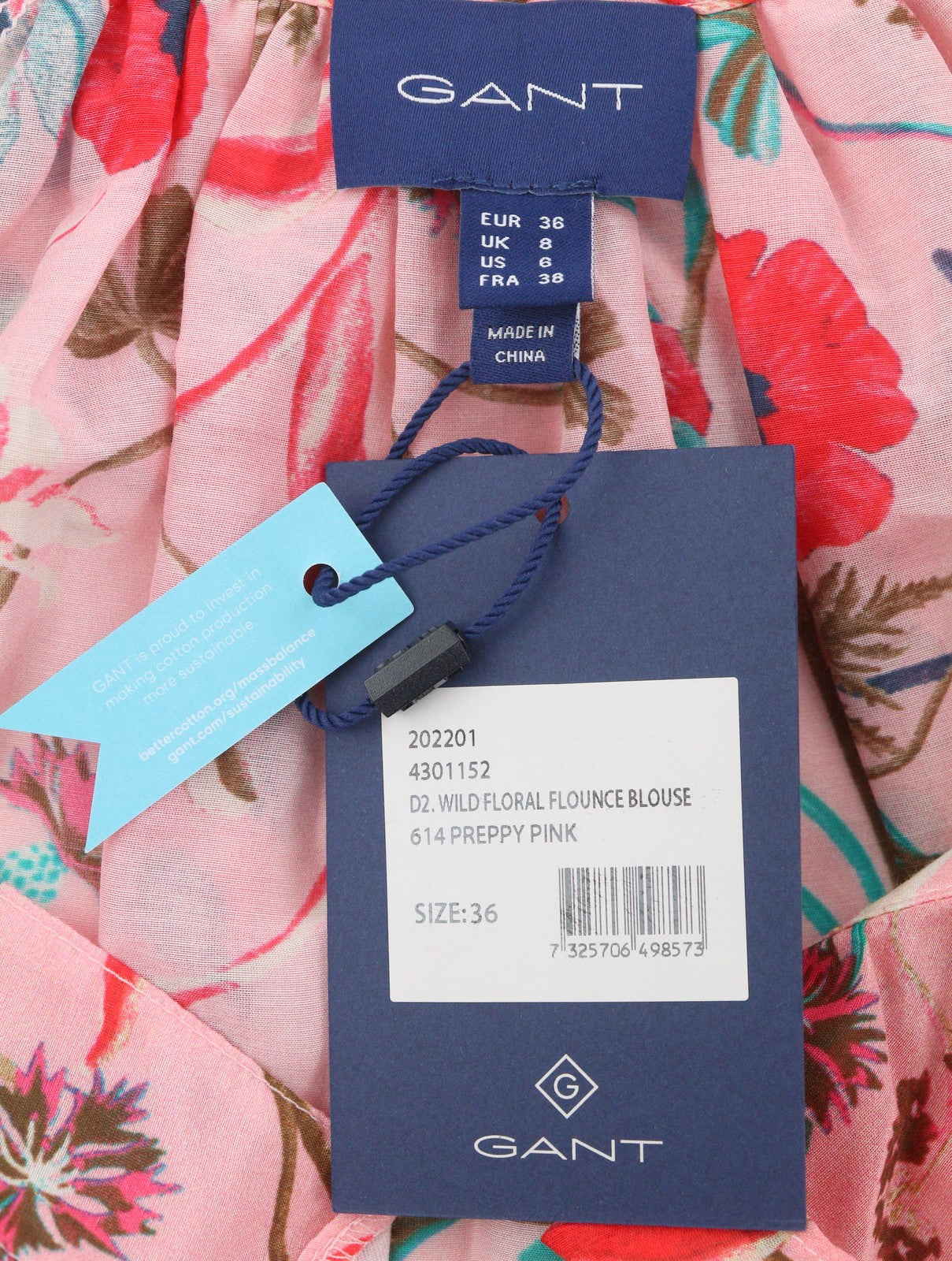 GANT Wild Floral Flounce Women Blouse EU36 Preppy Pink 3/4 Balloon Sleeves