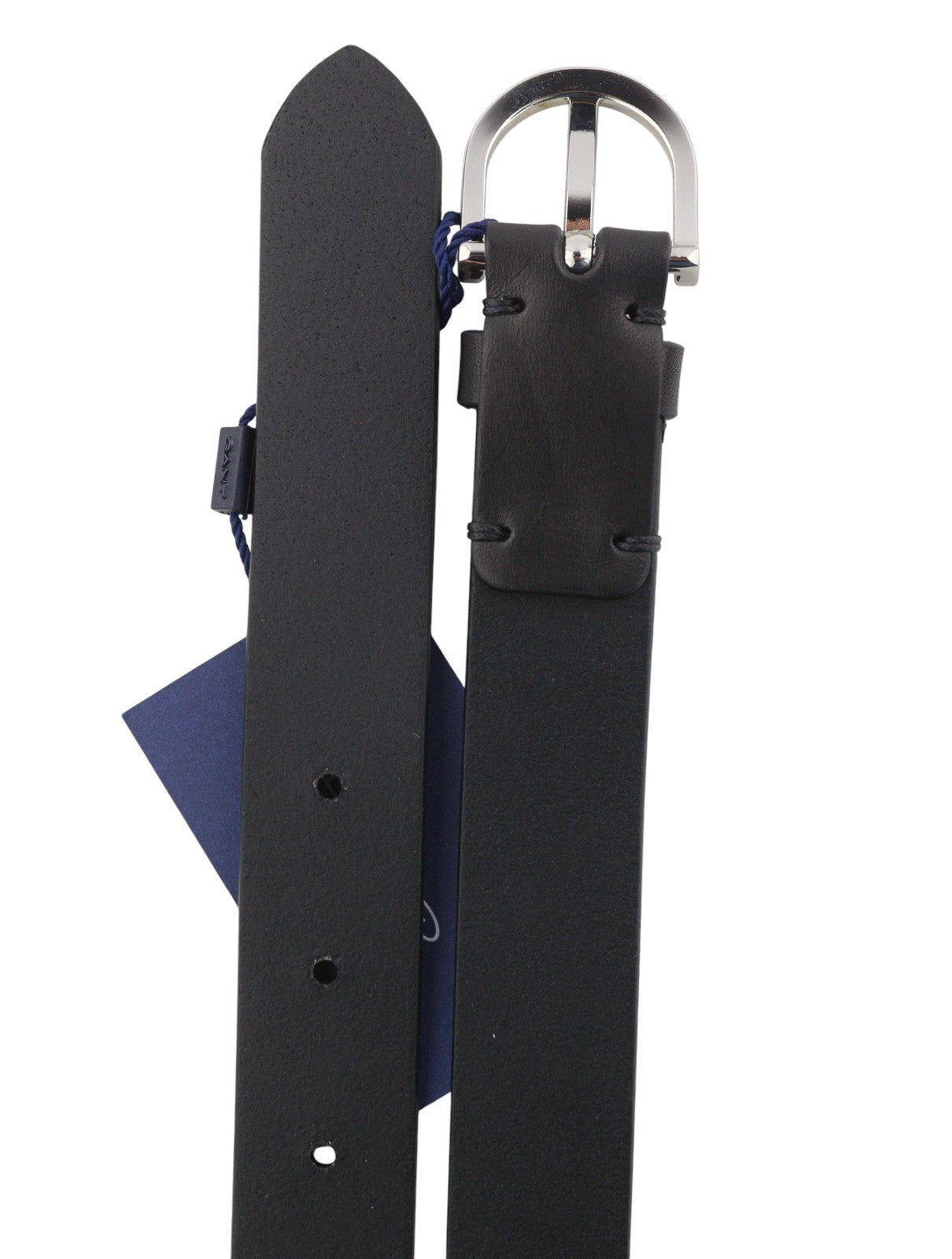 GANT Women Belt 85 CM Black Leather Silver Tone Buckle Logo Casual