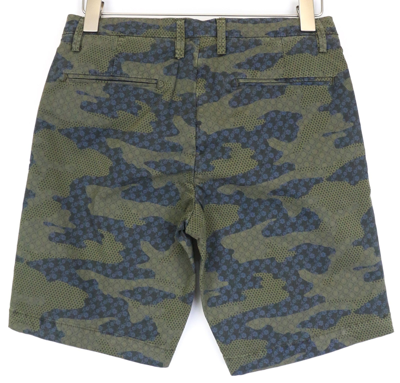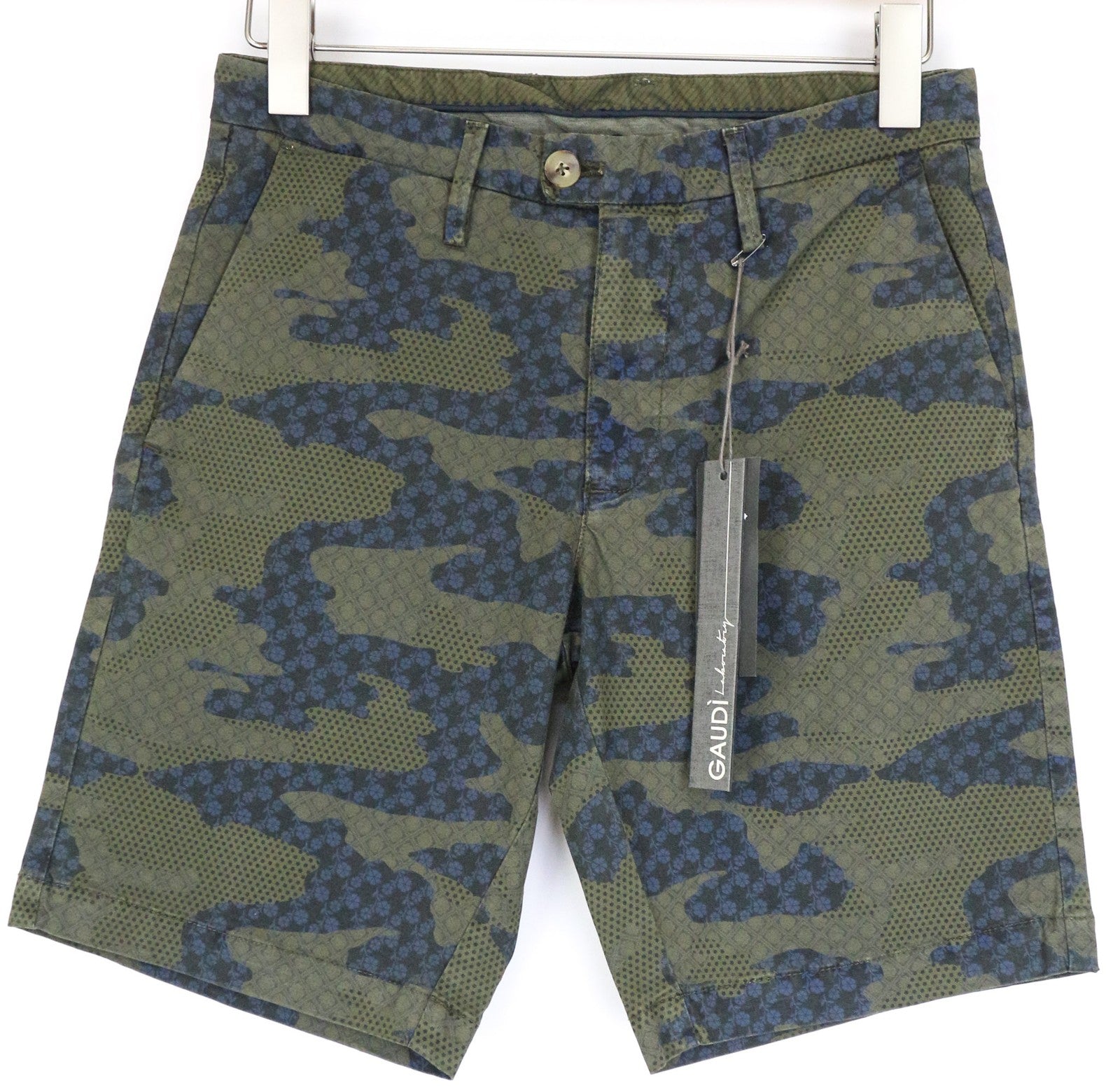 GAUDI vyriški šortai 44 W30 žali mėlyni raštuoti medvilniniai tamprūs laisvalaikio vasariniai drabužiai