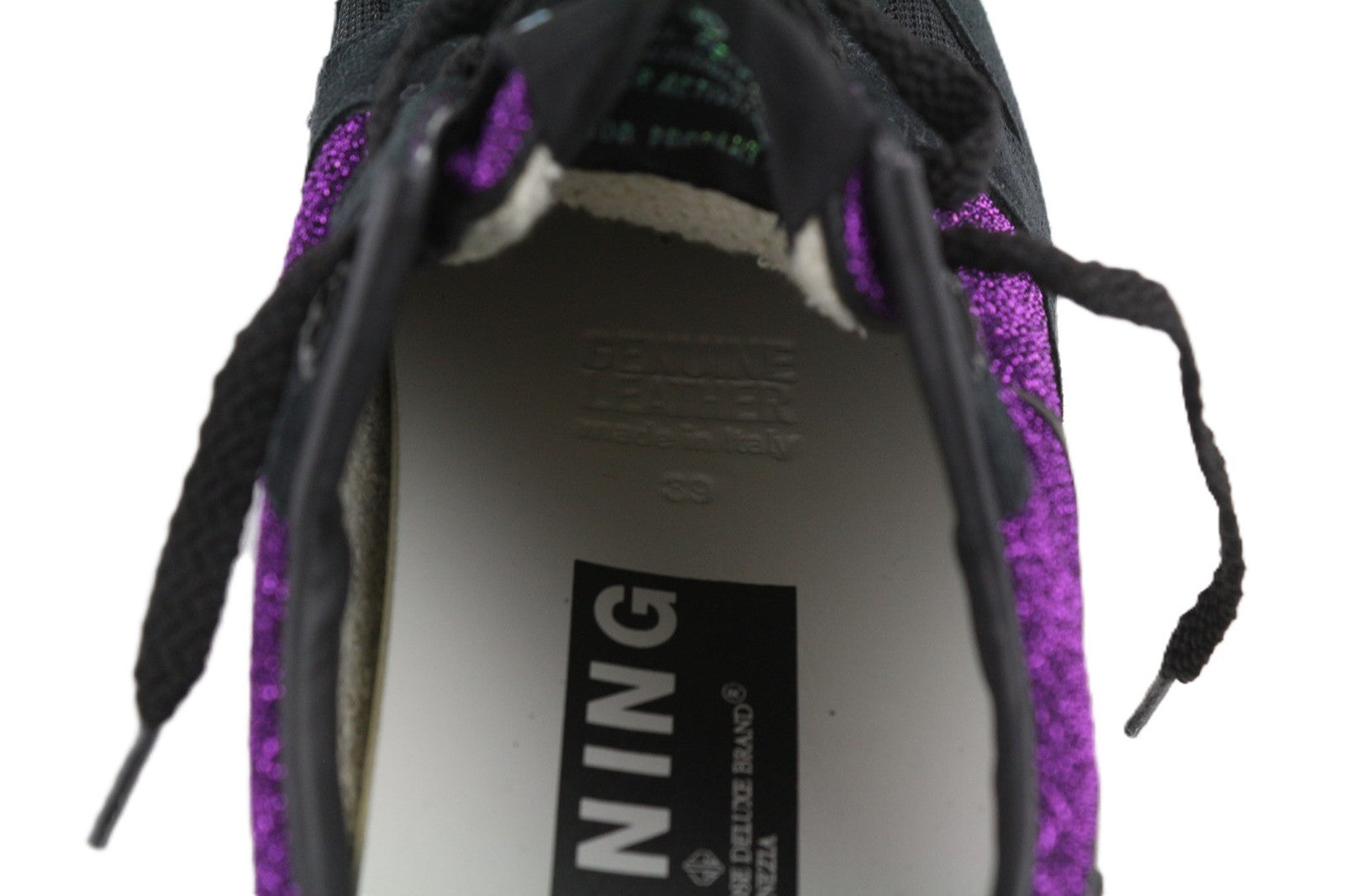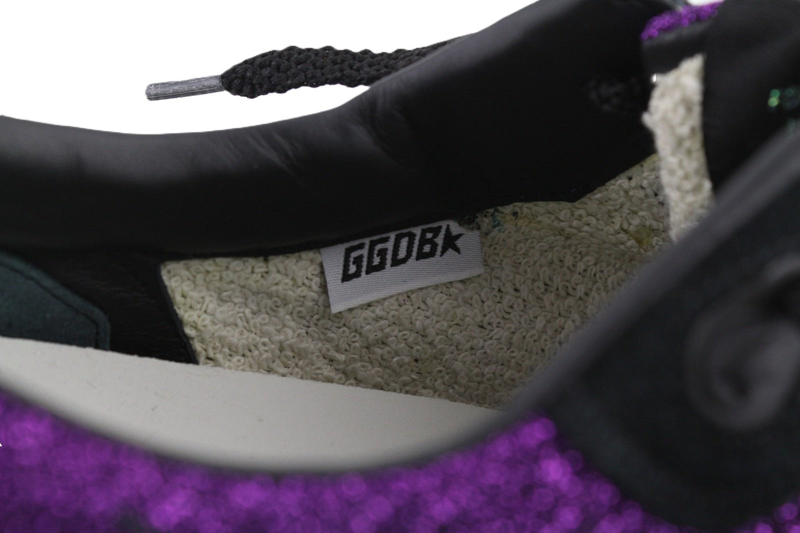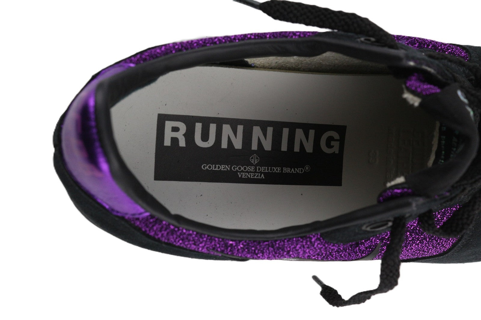 „GOLDEN GOOSE“ bėgimo bateliai moterims, 39 dydžio, violetiniai juodi, odiniai, blizgantys sportbačiai.