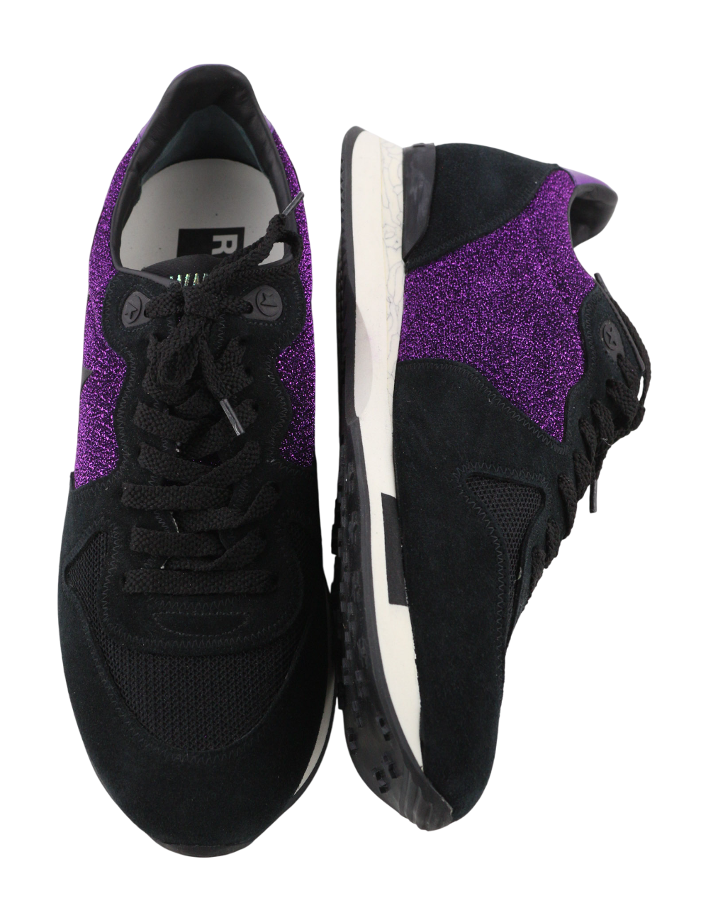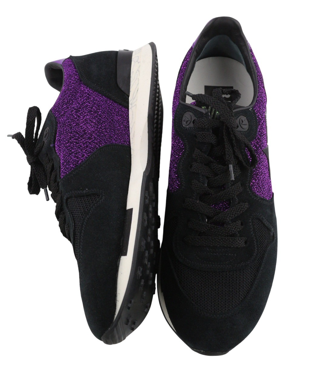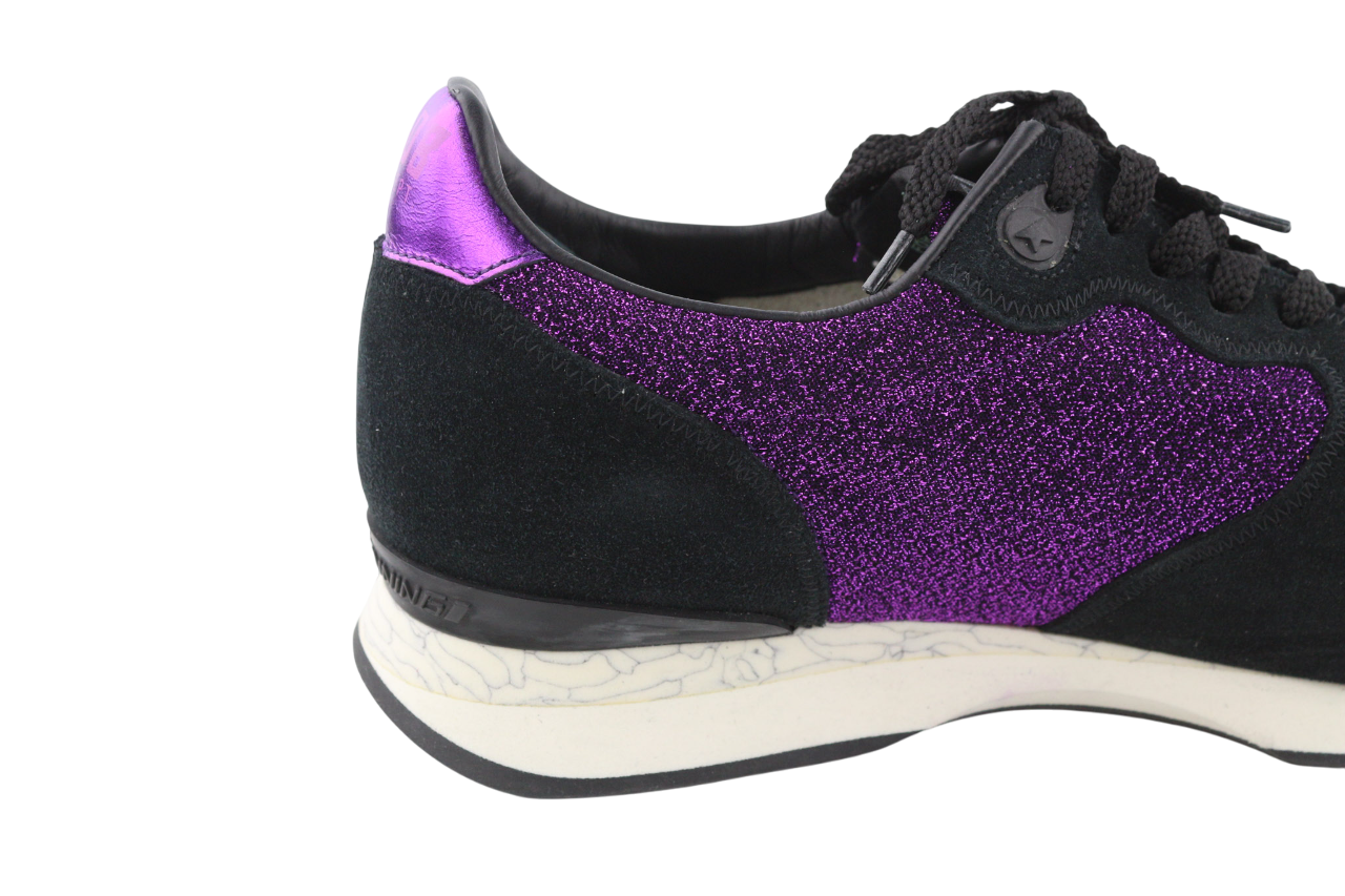 „GOLDEN GOOSE“ bėgimo bateliai moterims, 39 dydžio, violetiniai juodi, odiniai, blizgantys sportbačiai.