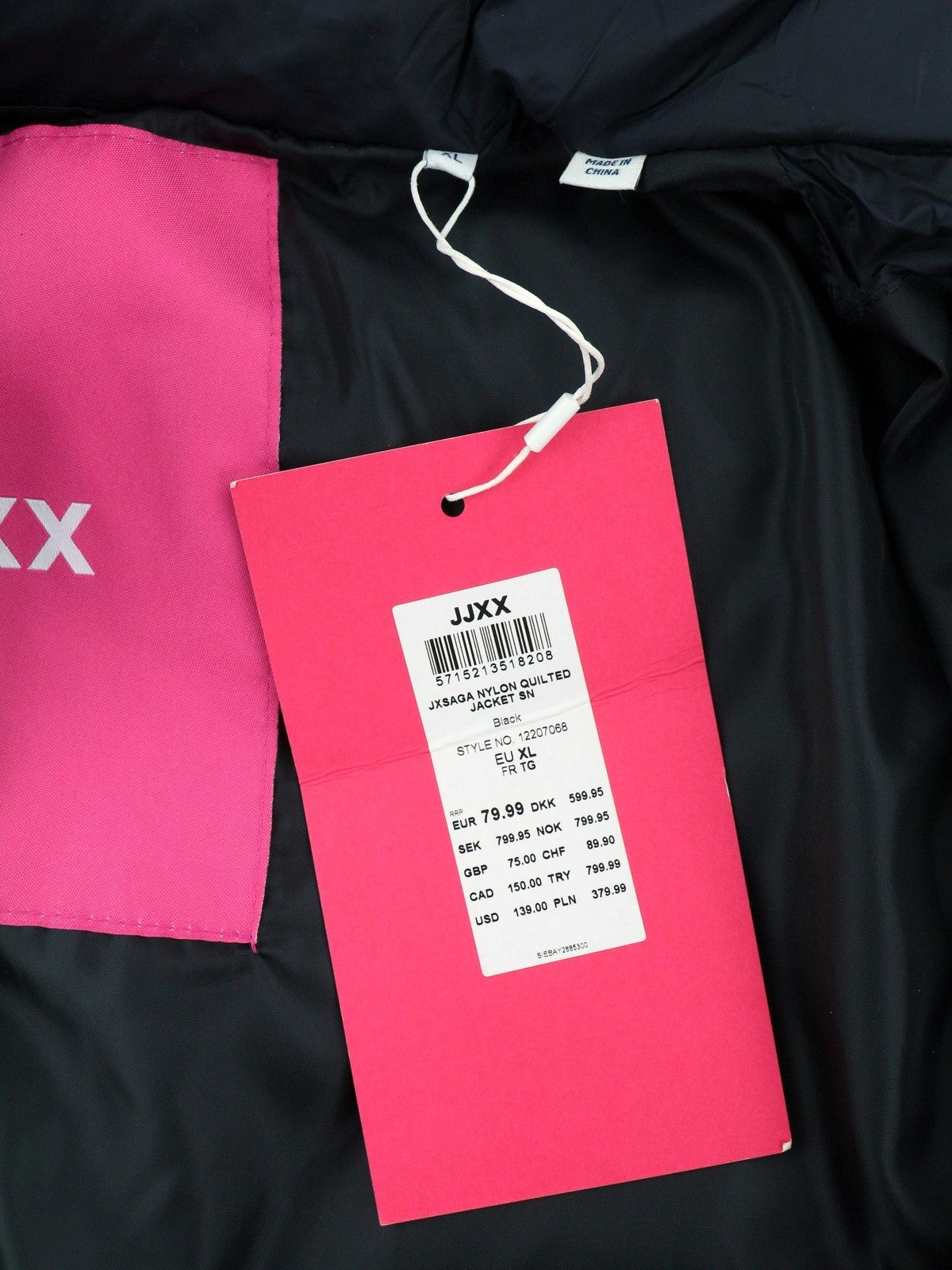 JJXX Jack&Jones Saga Nylon Quilted Women Jacket XL Black Oversized Hidden Hood