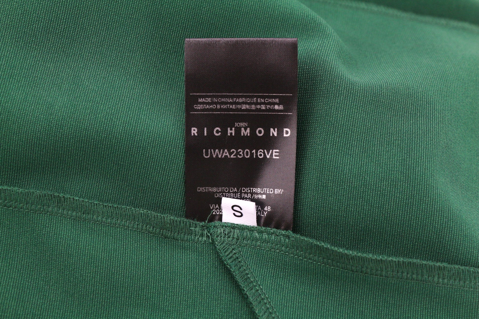 JOHN RICHMOND moteriška suknelė S žalia su iškirpte ir logotipu ilgomis rankovėmis