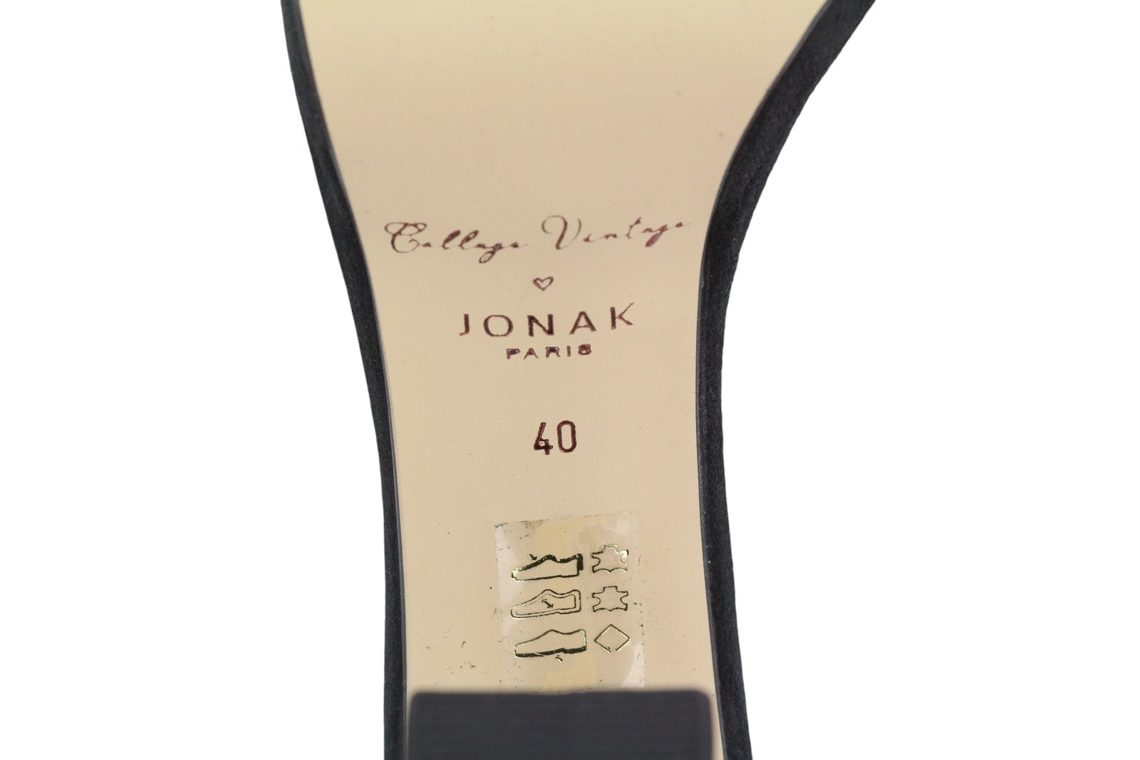 JONAK Women Heels EU40 Black Suede Velour Open Toe Block Heel Sandal Style