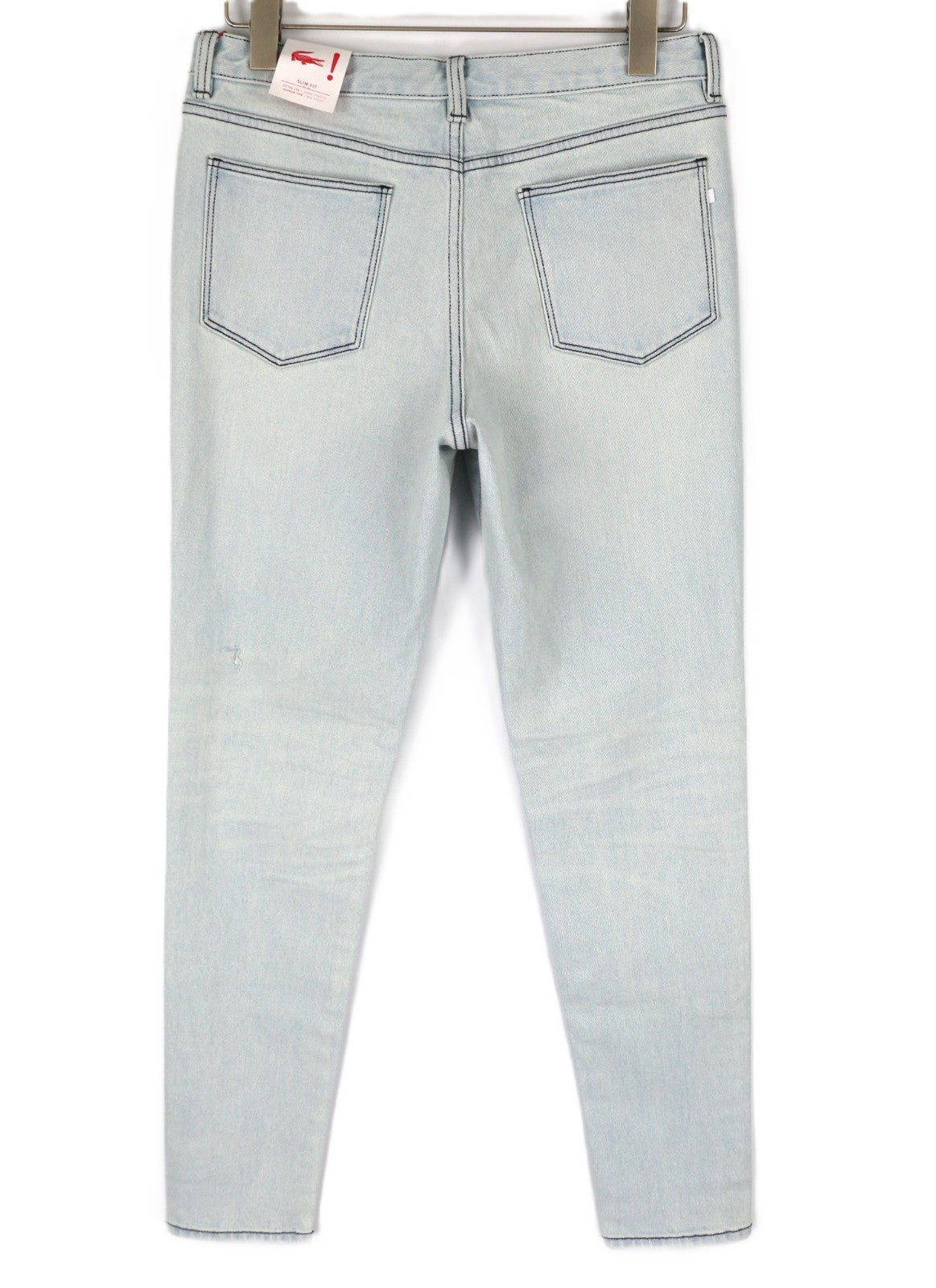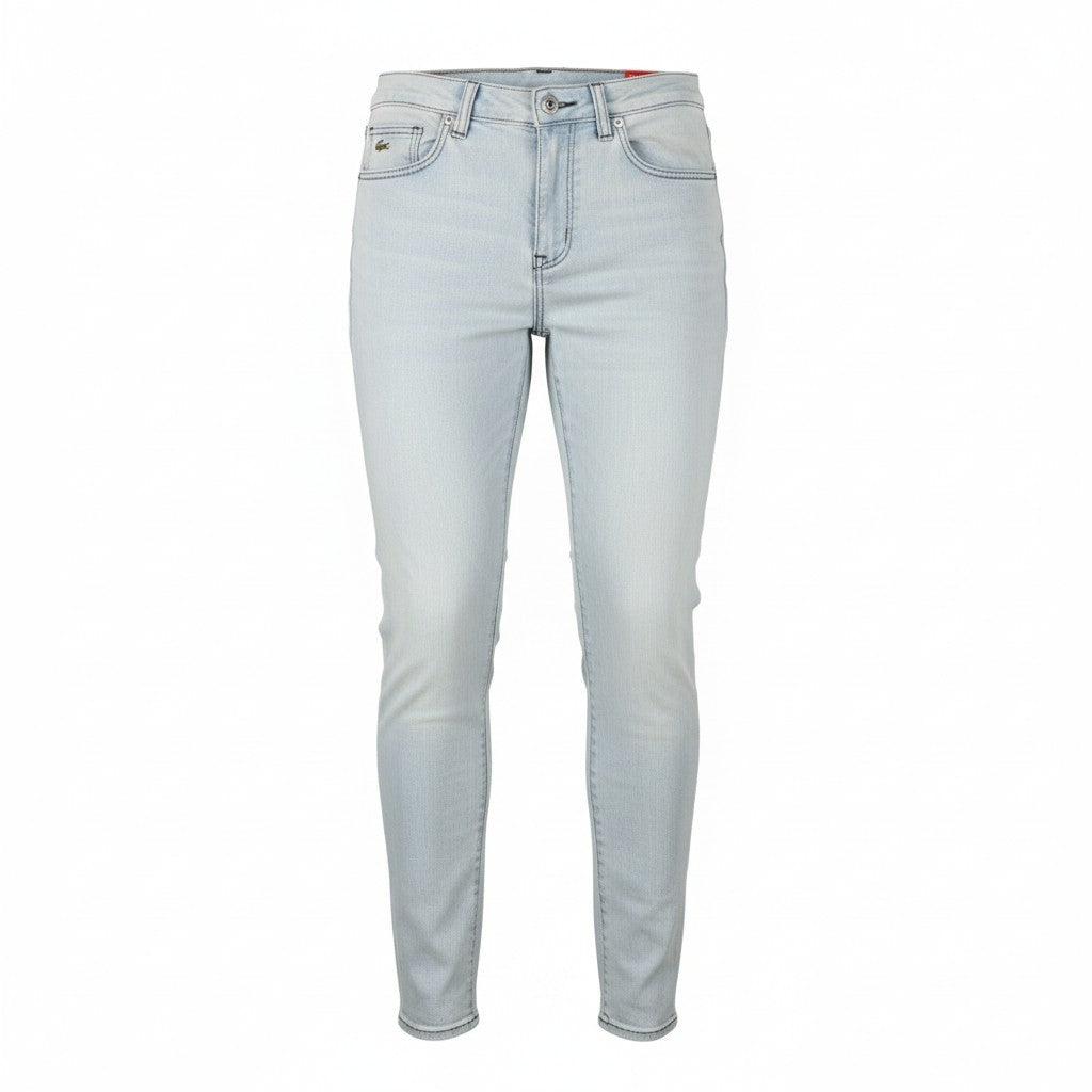 LACOSTE HF2897 moteriški W30 mėlyni skalbtos medvilnės tamprūs ploni siaurėjantys džinsai