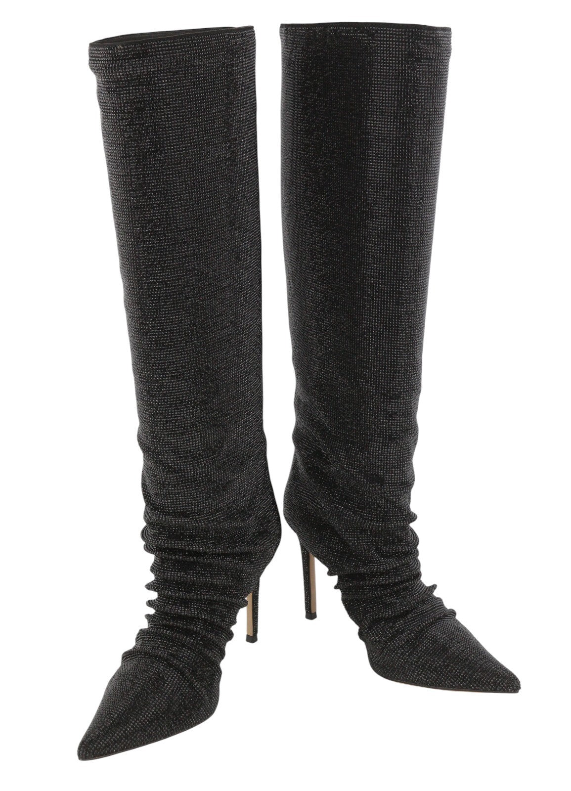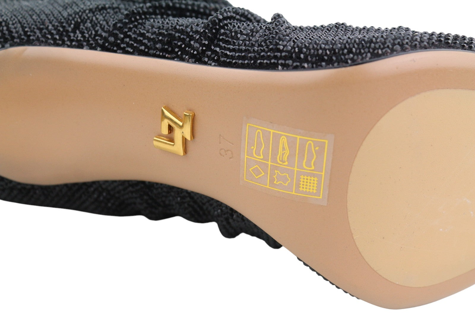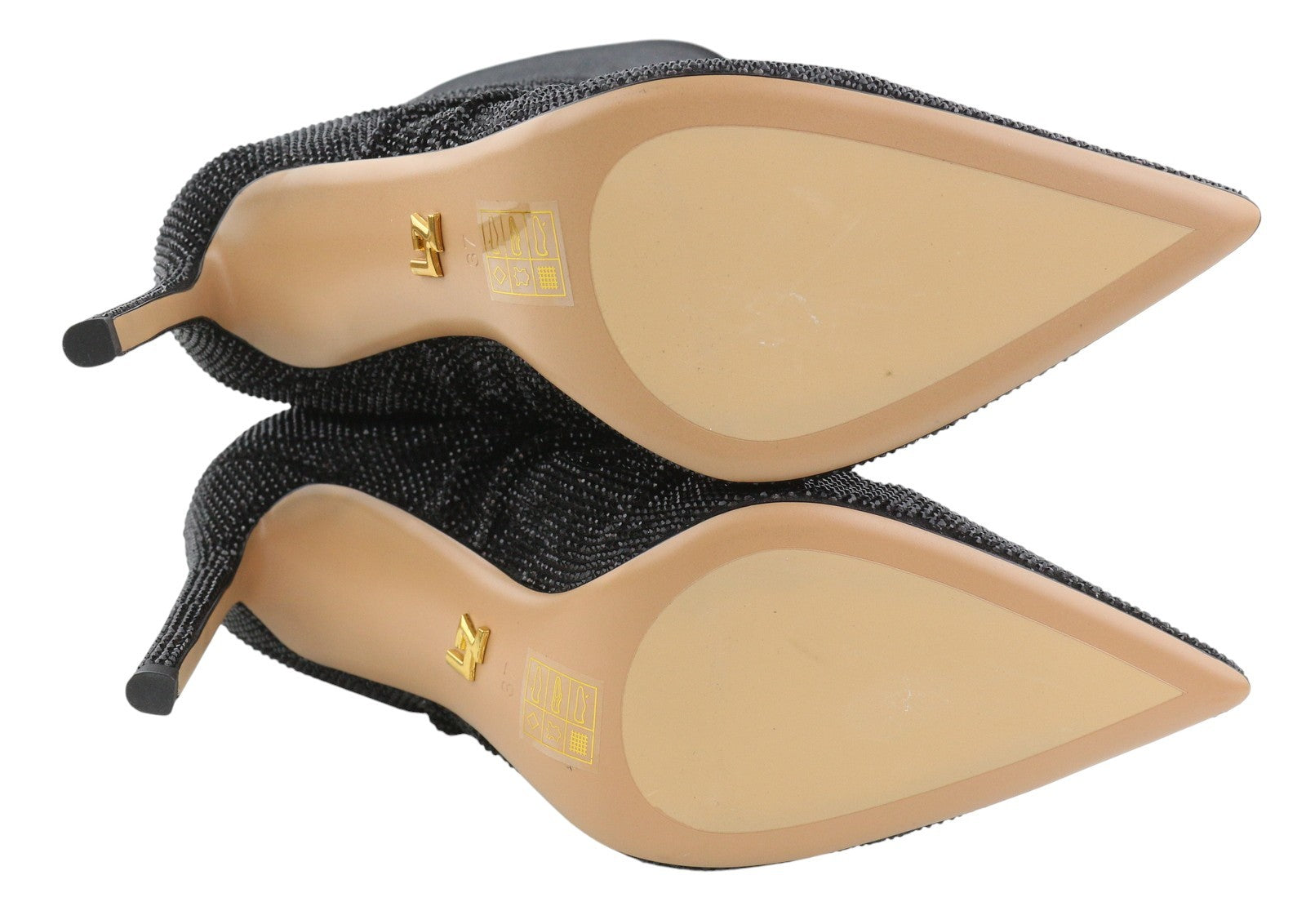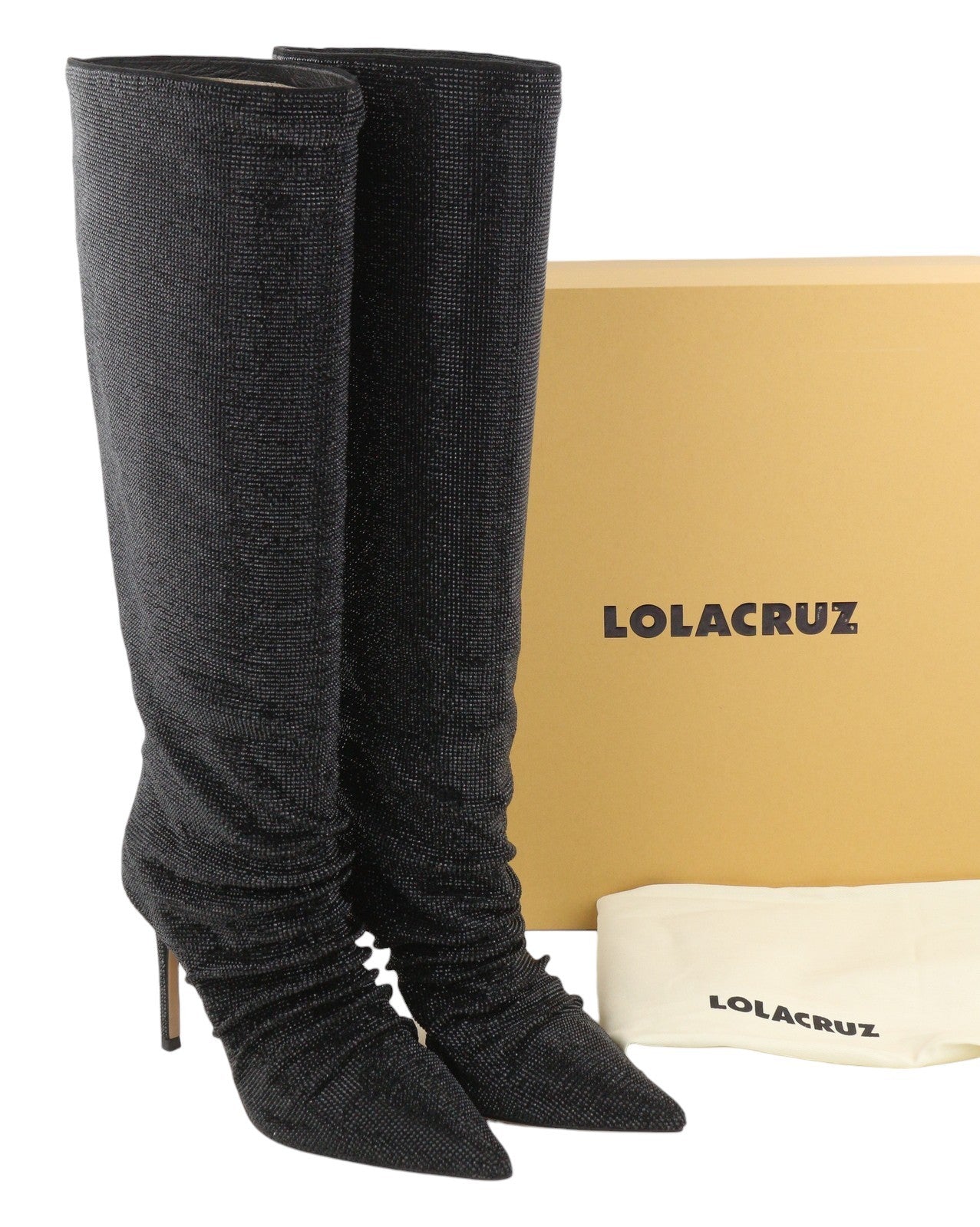 LOLA CRUZ Lievin Women Heels EU37 Black Leather Glitter Shiny Crinkled RRP425