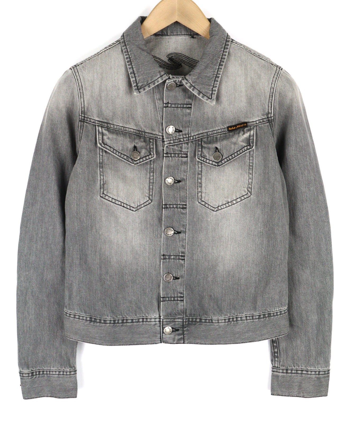 NUDIE JEANS Conny Men's Jacket S Sunbleached Black Grey Washed Polo Buttoned