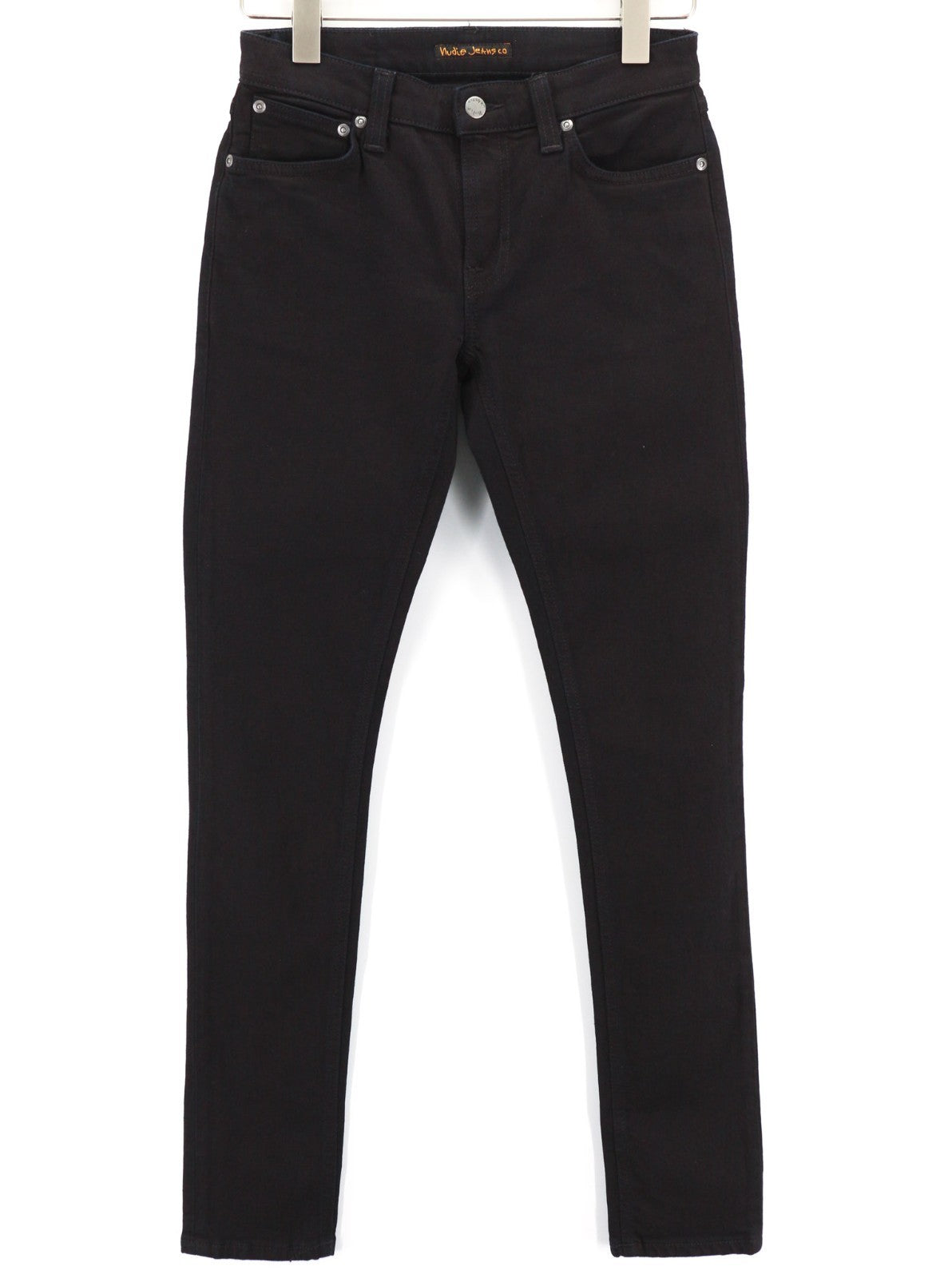 NUDIE JEANS Skinny Lin vyriški džinsai W28/L32 juodi su juodu užtrauktuku ir džinsiniu logotipu