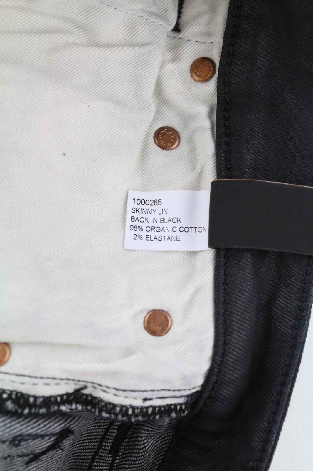 NUDIE JEANS Skinny Lin vyriški džinsai W28/L32 juodi su juodu dengtu organiniu tamsaus atspalviu