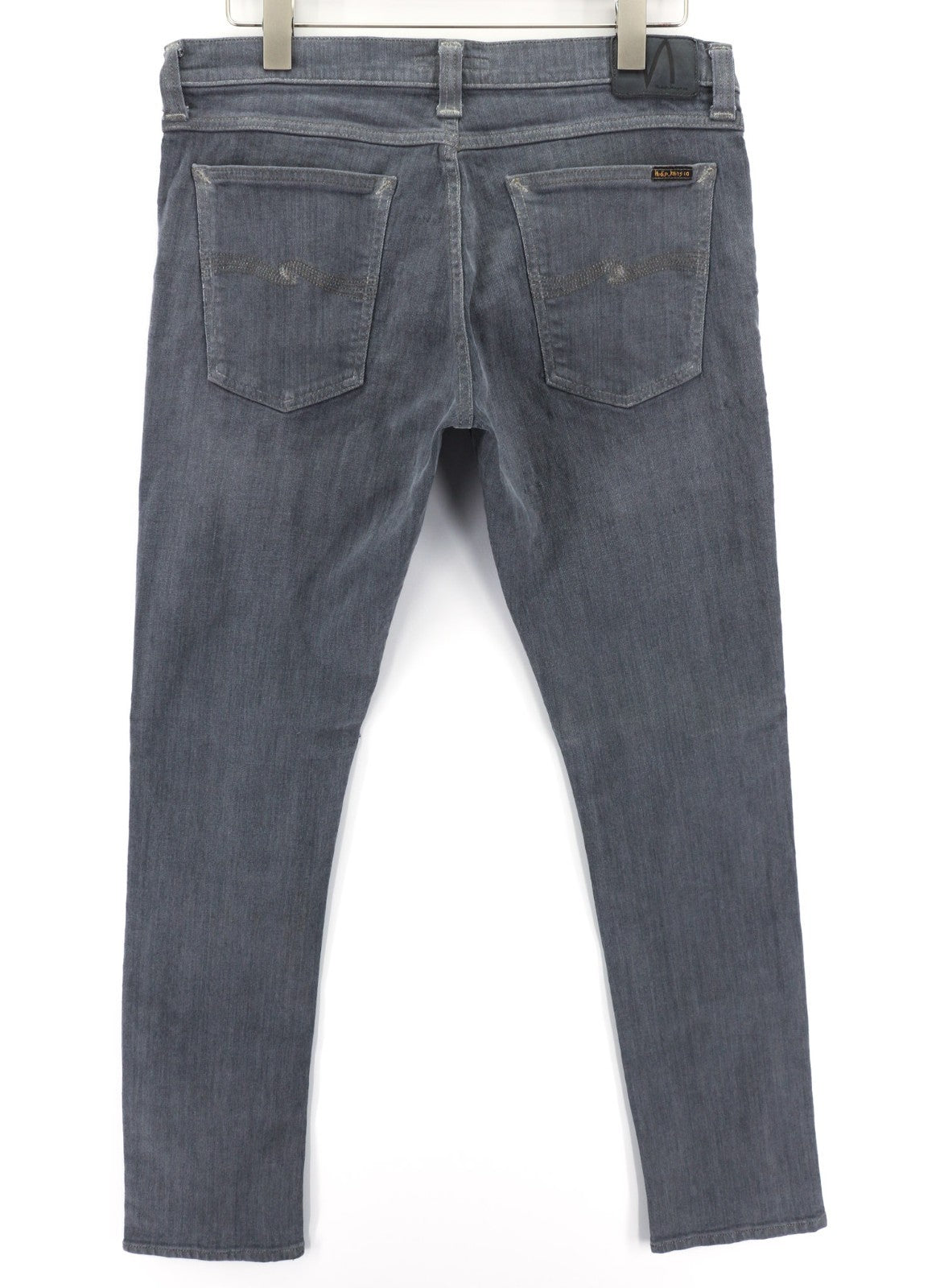 NUDIE JEANS Vyriški aptempti ilgi džinsai W34/L34 tamsiai pilki, ploni su logotipu