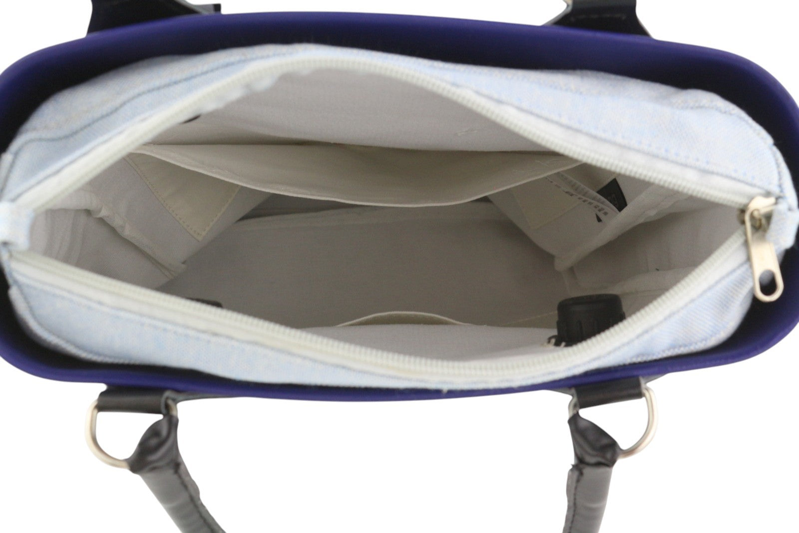 O BAG Chic Women Bag OS Blue Twin Handles Inner Pouch Mini Square Tote Logo