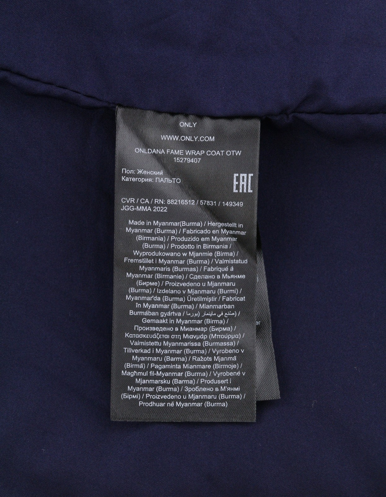 ONLY Dana Fame Wrap Women Coat XS Evening Blue Notch Lapel Belted Snap Buttons