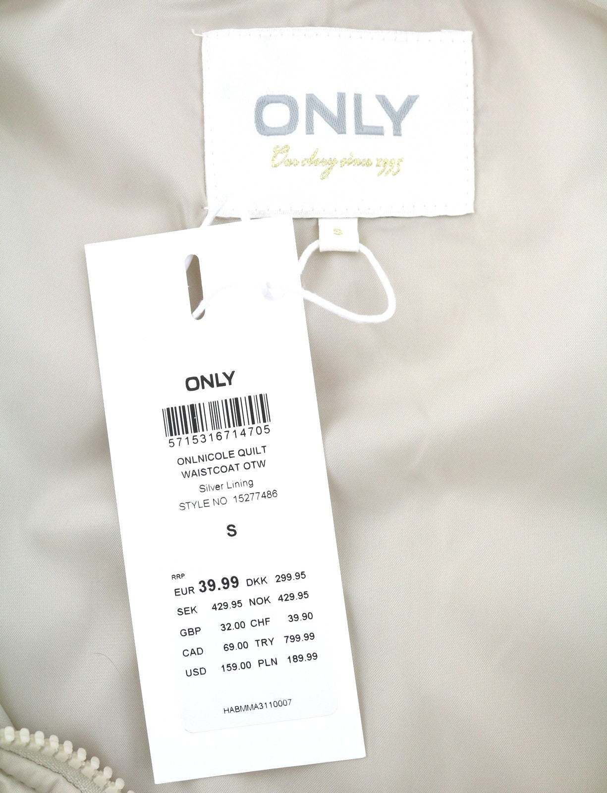ONLY Nicole Quilt Women Waistcoat S Beige Padded High Neck Full Zip Vest