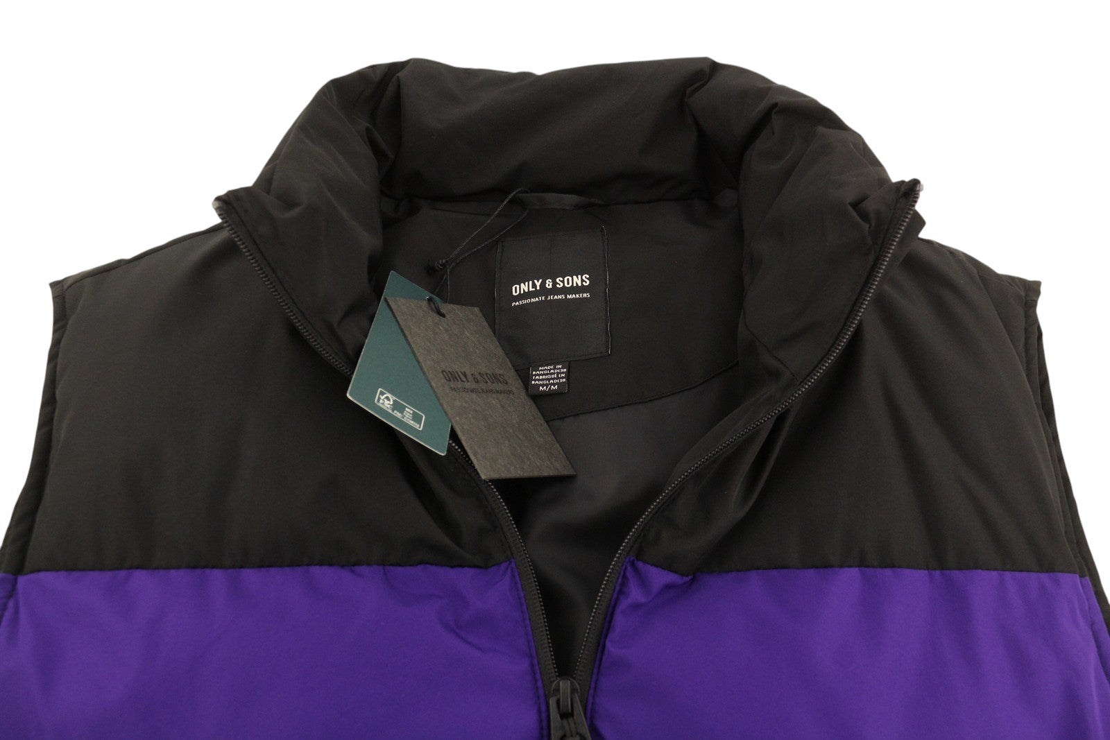 ONLY & SONS Mario Life Puffer Men Waistcoat M Violet Padded Quilted High Neck