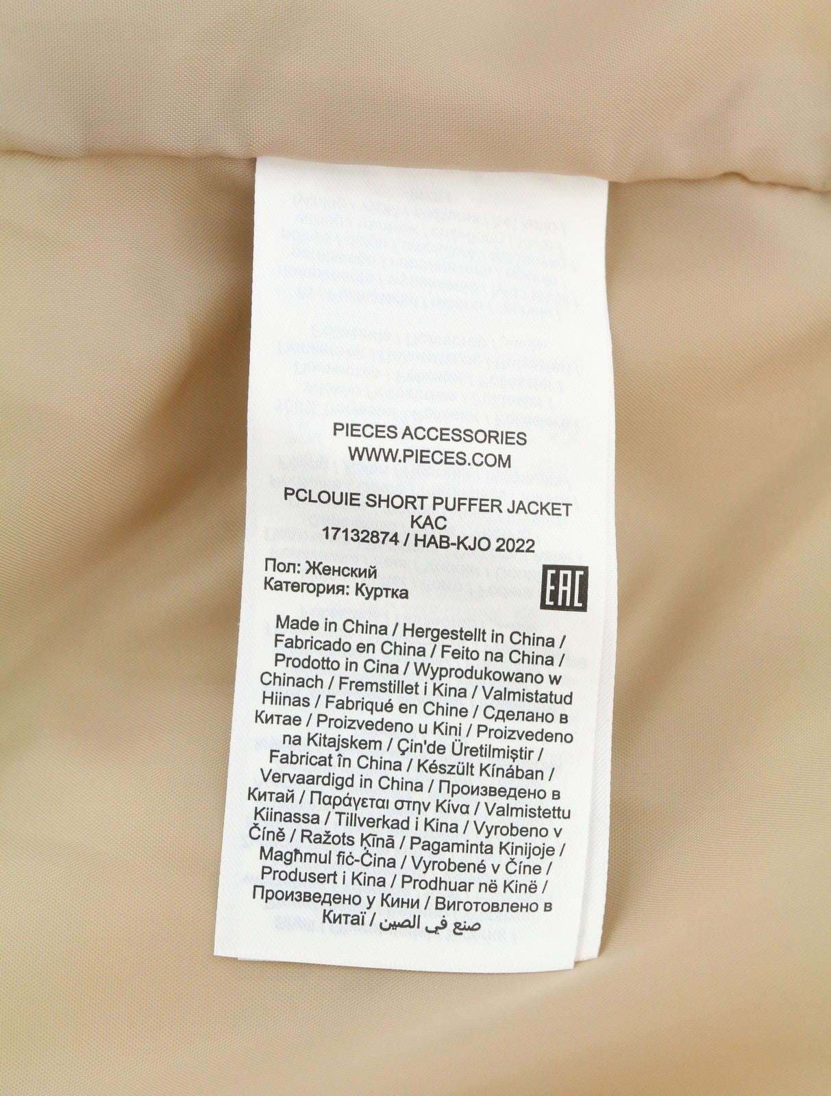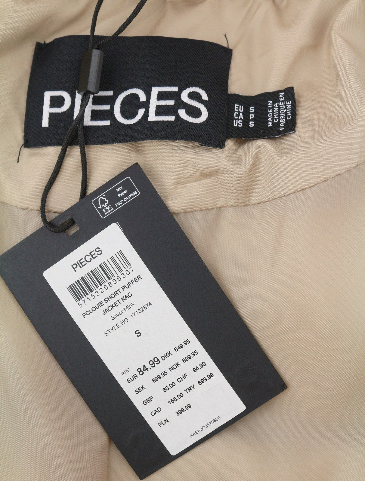 PIECES Louie Short Puffer Women Jacket S Silver Mink Padded Quilted Hooded Zip
