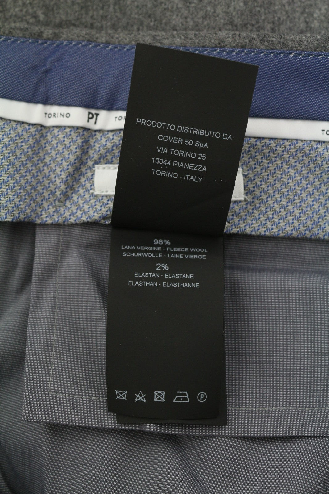 PT TORINO Skinny Fit Men's 60 W42 Grey Wool Fleece Blend Zipper Logo Trousers