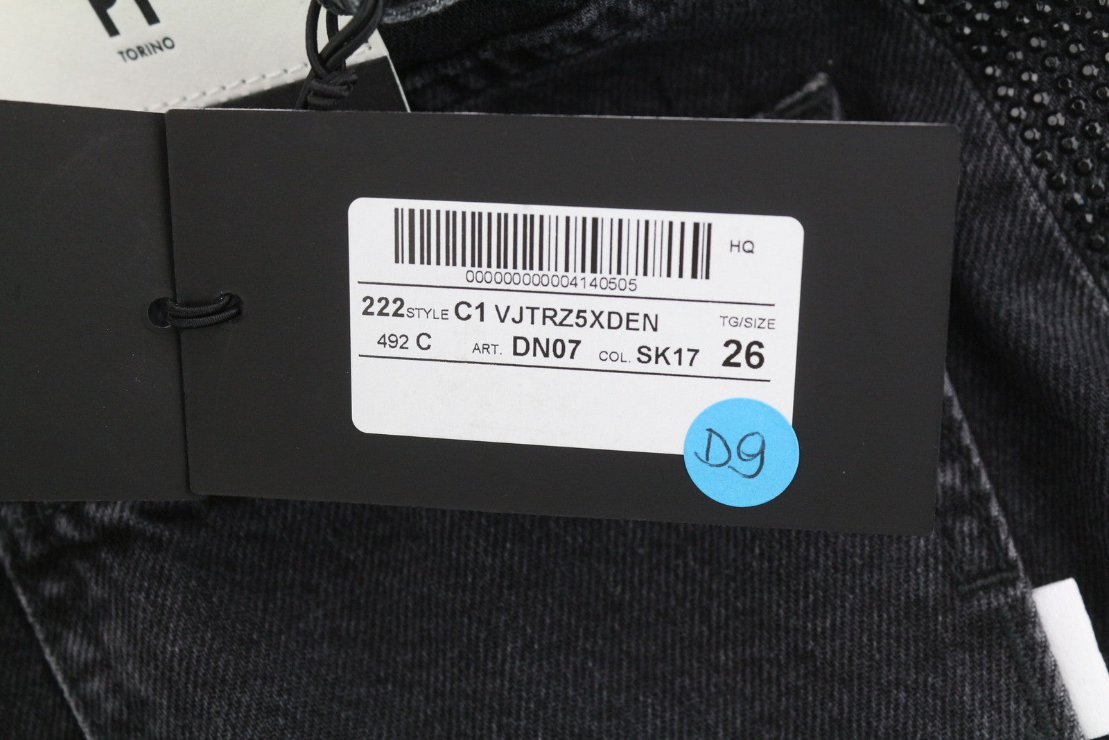 PT TORINO Tracy Women's Jeans W26 Black Straight Fit Rhinestone Detail