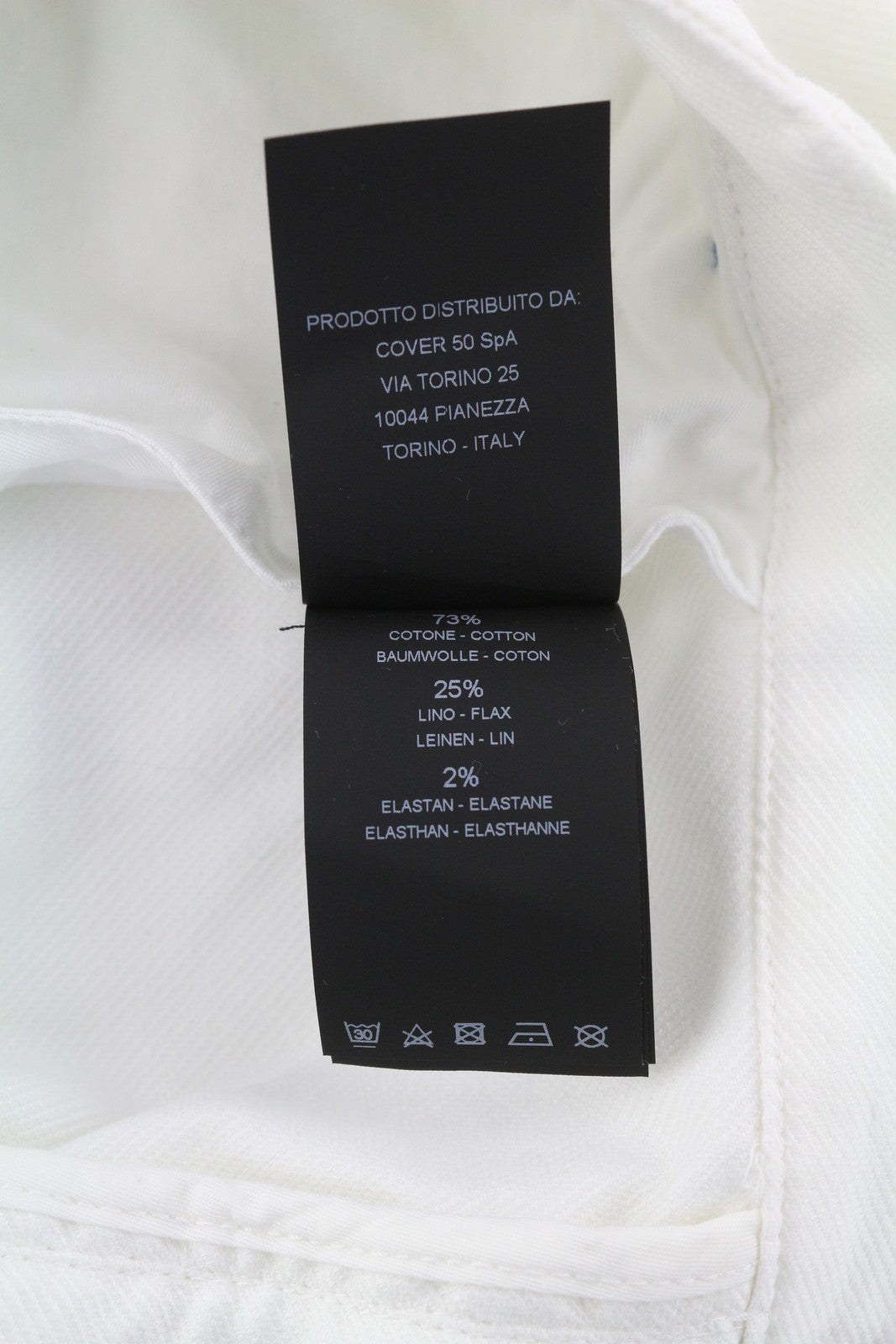 PT TORINO Zoe Women's Trousers 46 White Linen Blend High Waist Slim Cargo