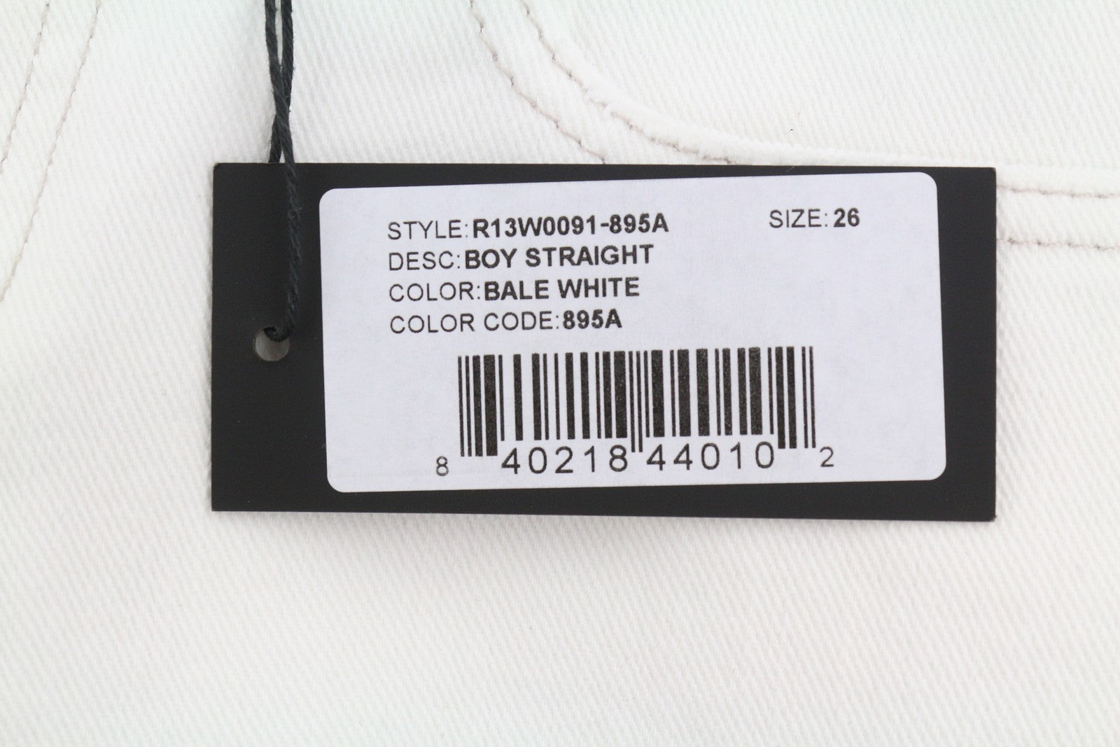 R13 Boy Straight Women Jeans 26 Bale White Cropped Ankle Denim PS25 RRP499
