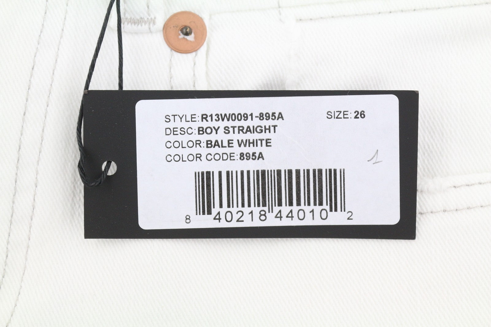 R13 berniukiški tiesūs moteriški džinsai 26 Bale balti trumpi džinsai su užtrauktuku iki kulkšnies PS25 RRP499