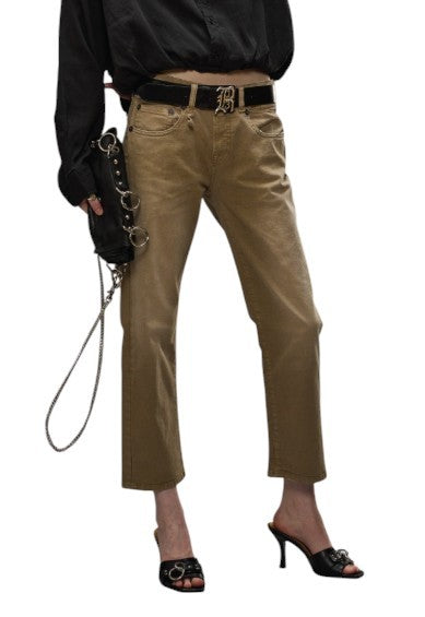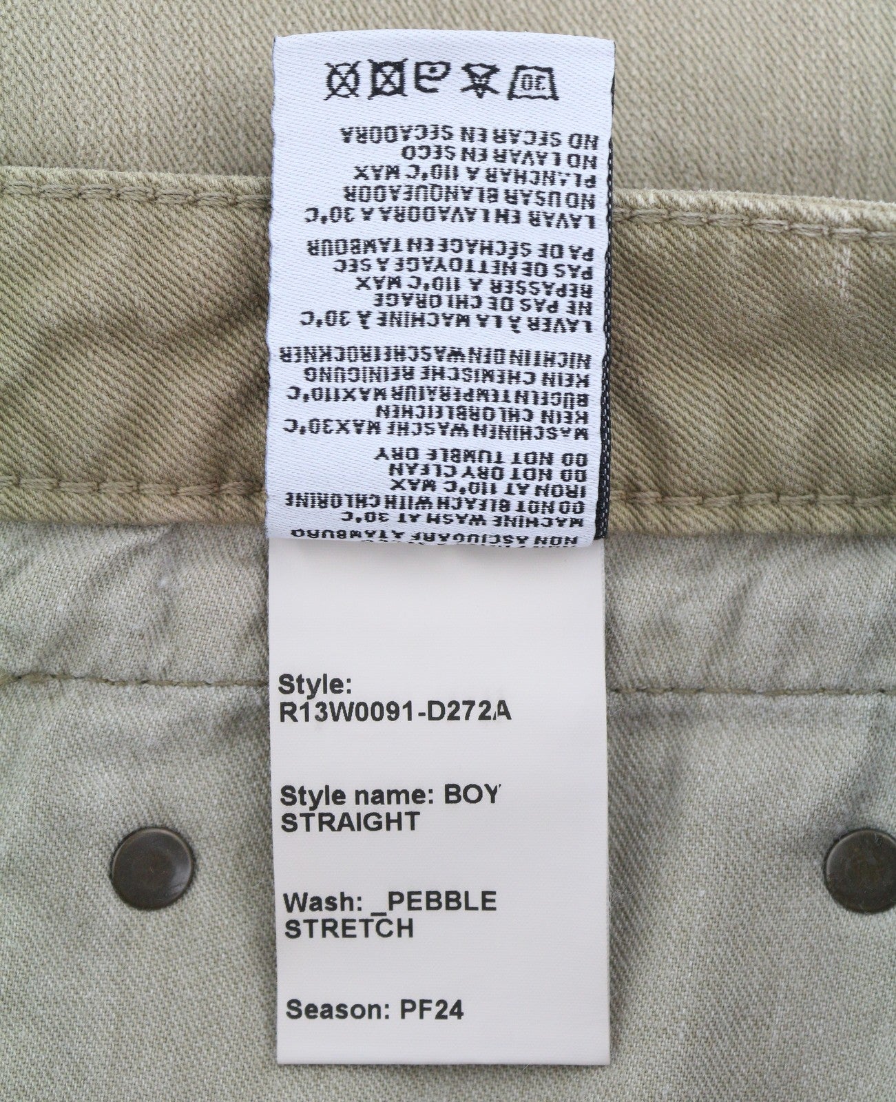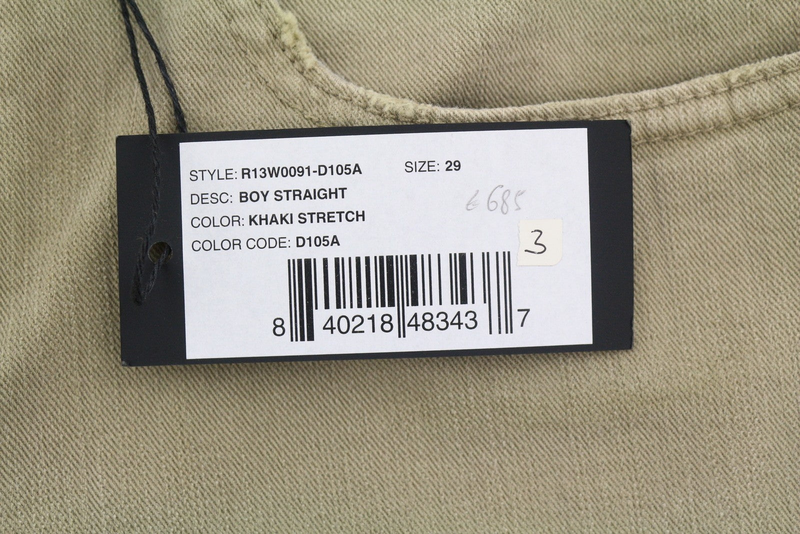 R13 Boy Straight Women Jeans 27 Pebble Stretch Faded Cropped Ankle Zip RRP699