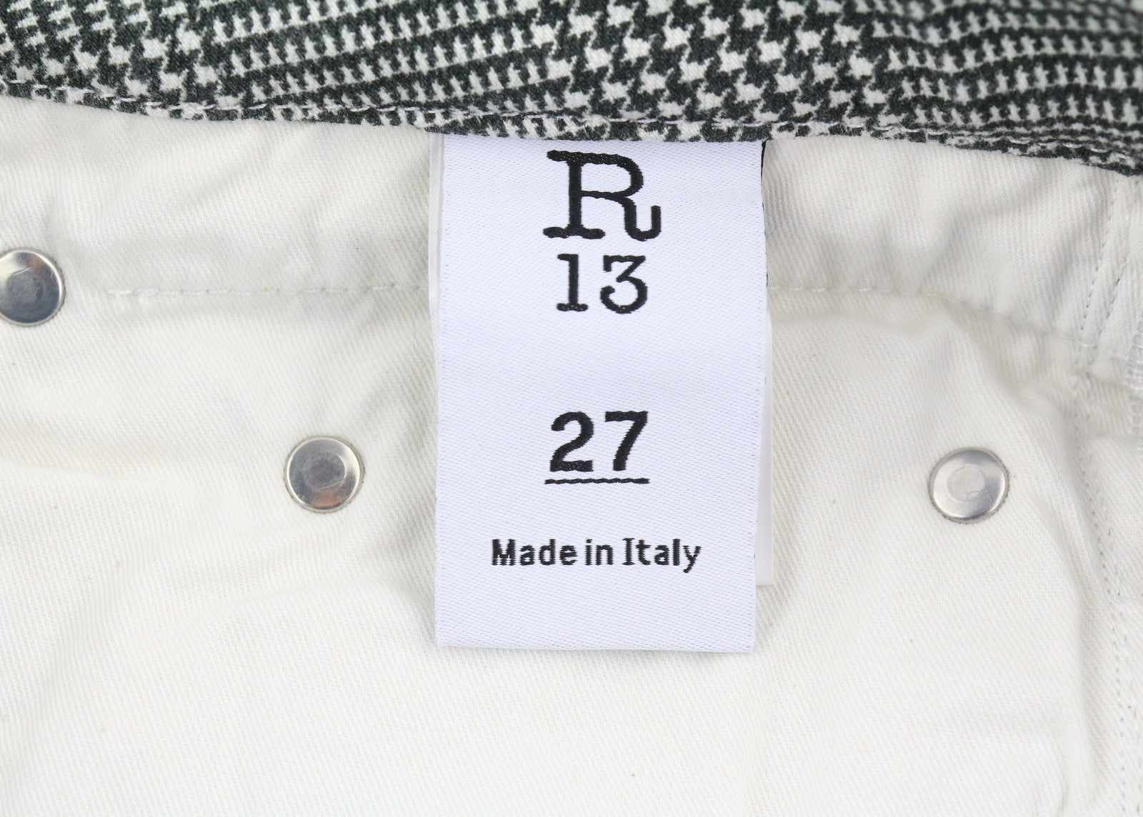 R13 Boy Straight Women Jeans 27 Printed Glen Plaid Cropped Ankle RRP499