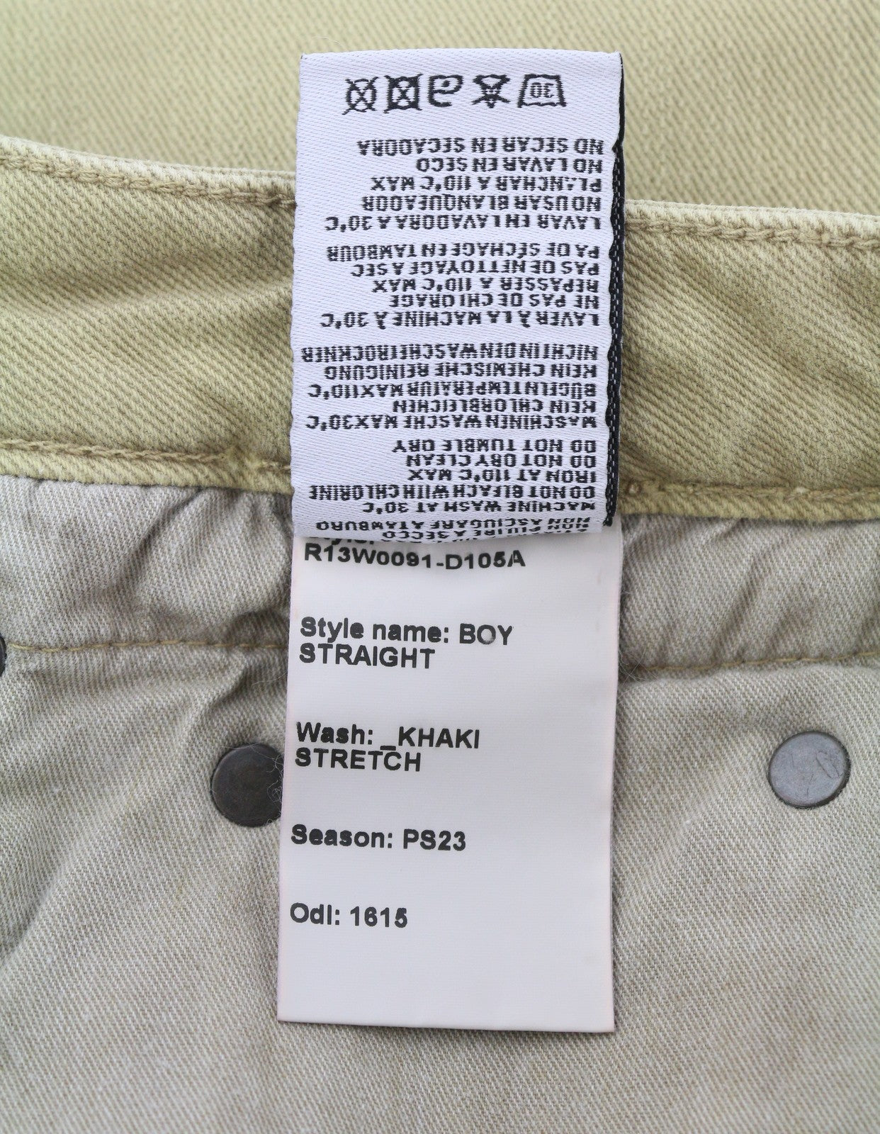 R13 Boy Straight Women Jeans 28 Khaki Stretch Denim Cropped Pockets RRP699
