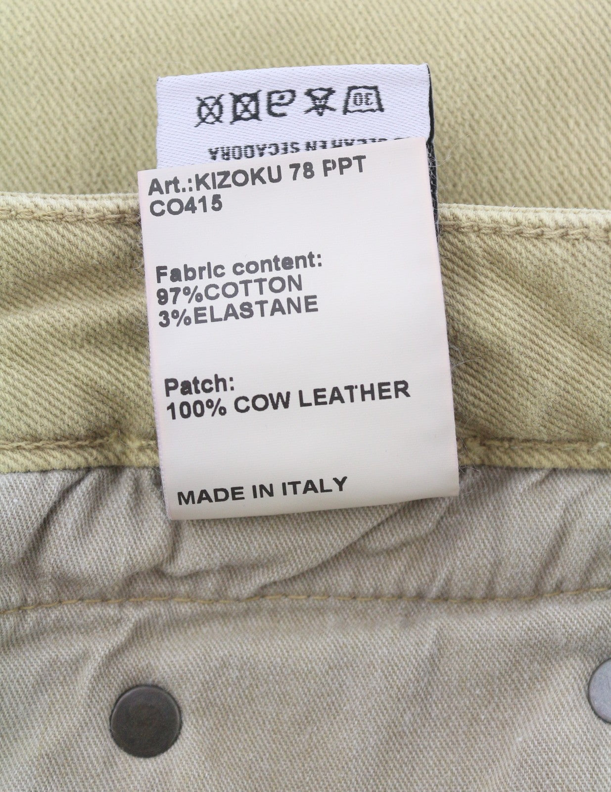 CONDITION: Slightly discoloured on the right leg. The material is slightly waved (elastane is stretch out) in a few places. Please see added photos.