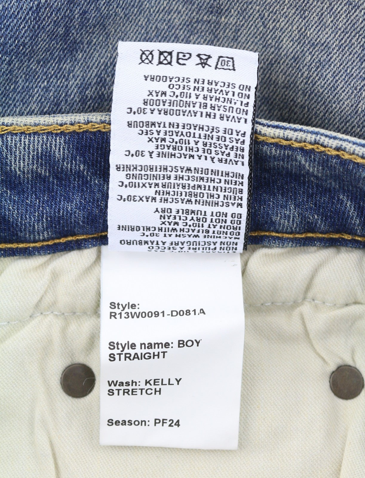 R13 berniukiški tiesūs moteriški džinsai 29 Kelly tamprūs trumpi užtrauktuku, išblukintos mėlynos spalvos RRP699