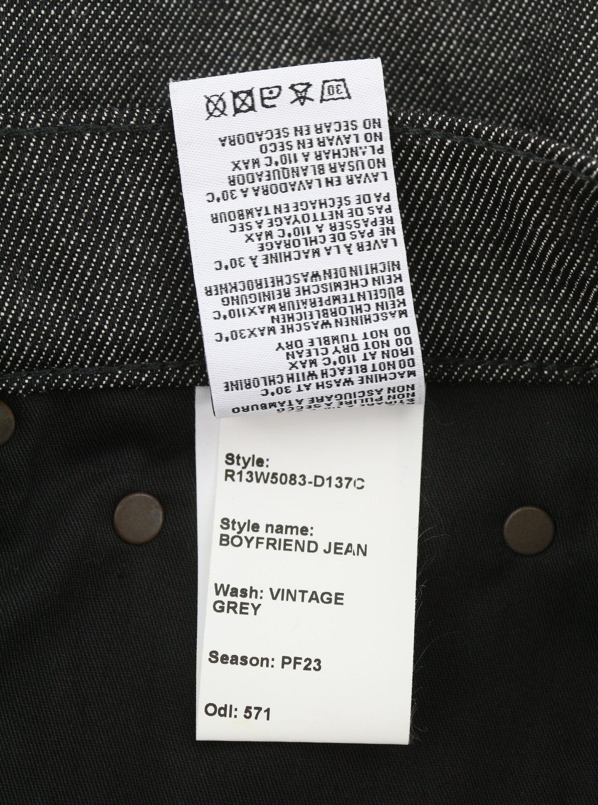 R13 Boyfriend Women Jeans 26 Vintage Grey Cropped Dark Denim Zip Fly