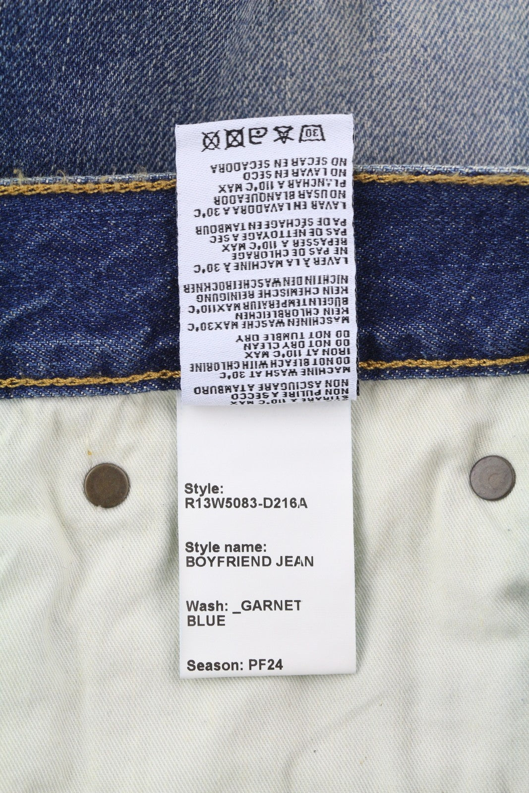 R13 Boyfriend Women Jeans 29 Garnet Blue Washed Faded Cropped Ankle Zip