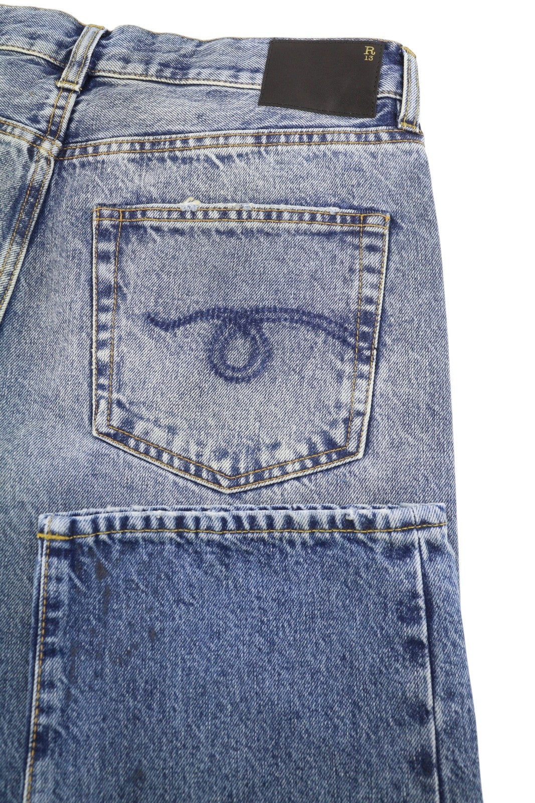 R13 Boyfriend moteriški džinsai 29 Jasper trumpinti ūsai išblukusi mėlyna PF25 RRP699