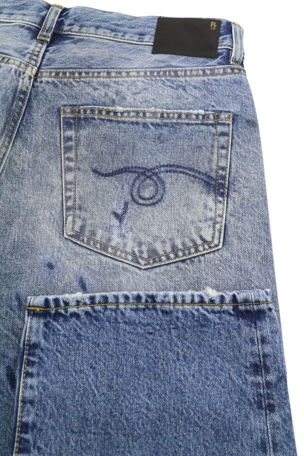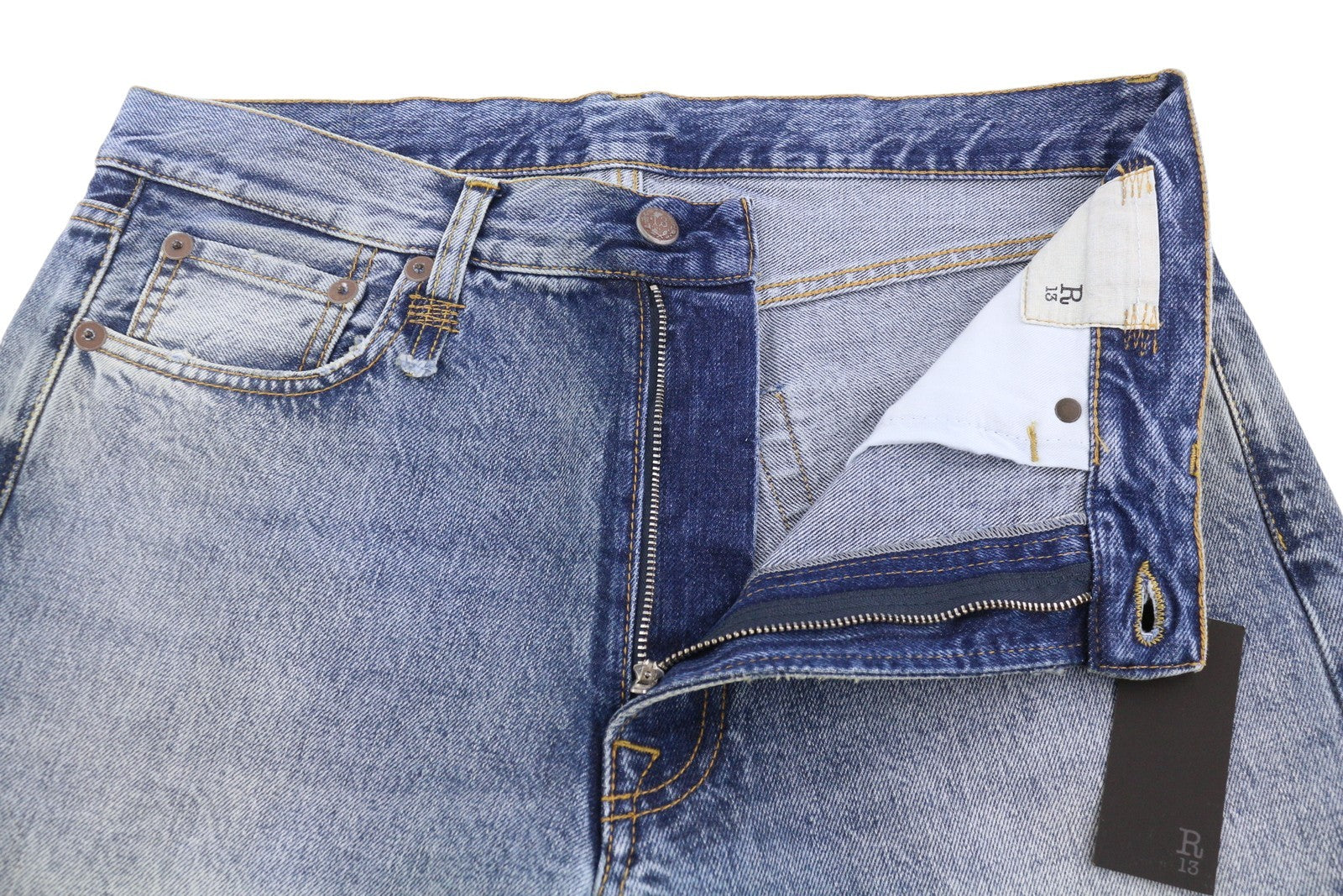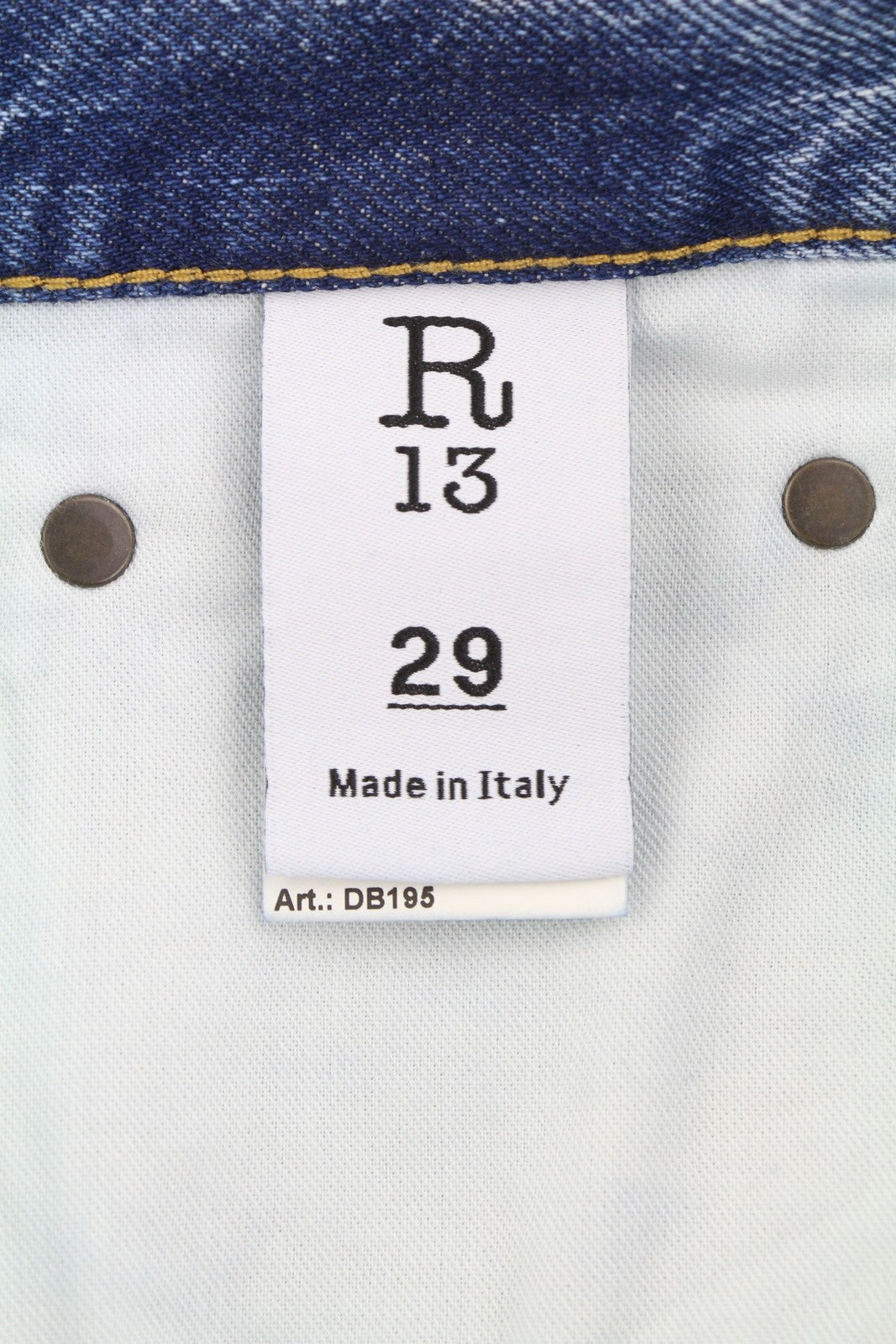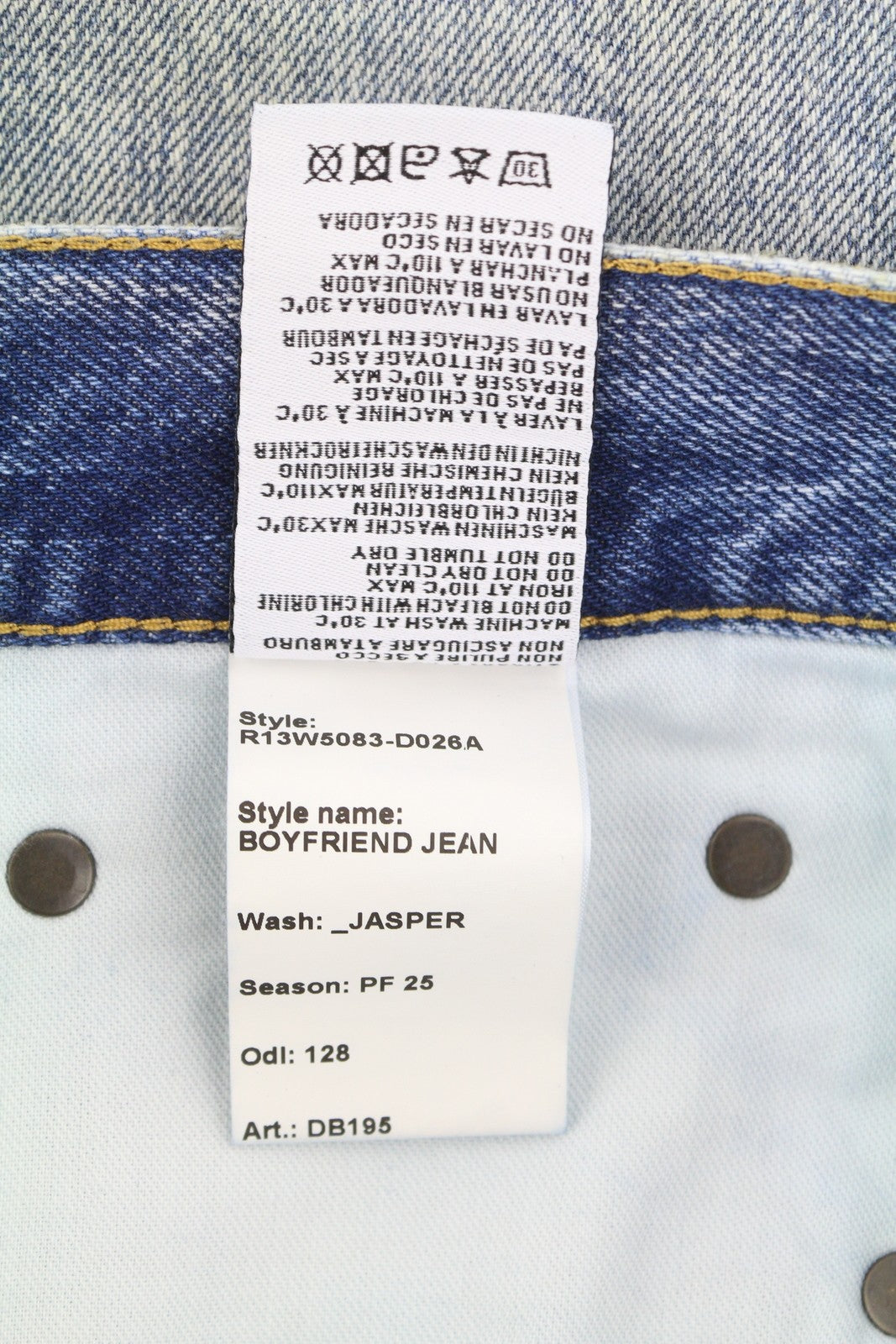 R13 Boyfriend moteriški džinsai 29 Jasper trumpinti užtrauktuku, ūsai, išblukusi mėlyna FW25