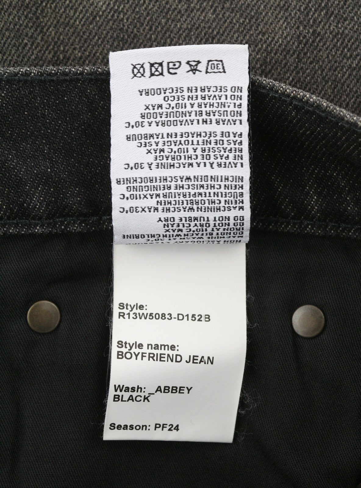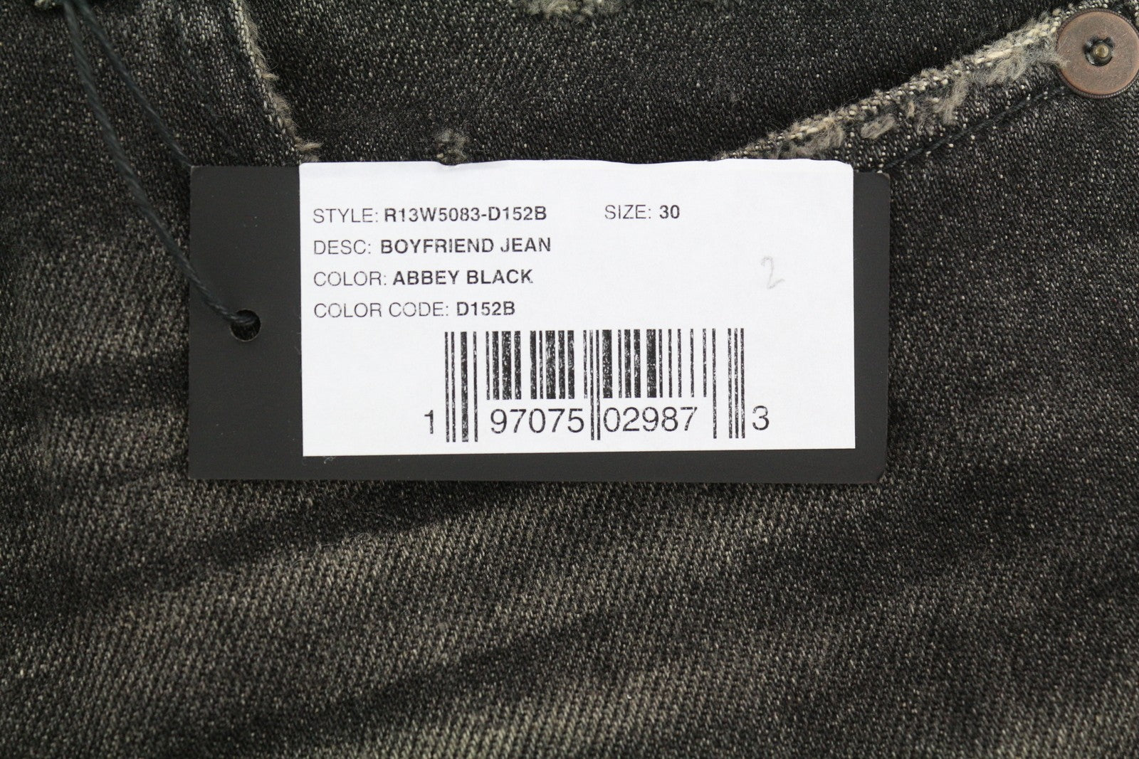 R13 Boyfriend Women Jeans 30 Abbey Black Washed Distressed Hem Relaxed Denim
