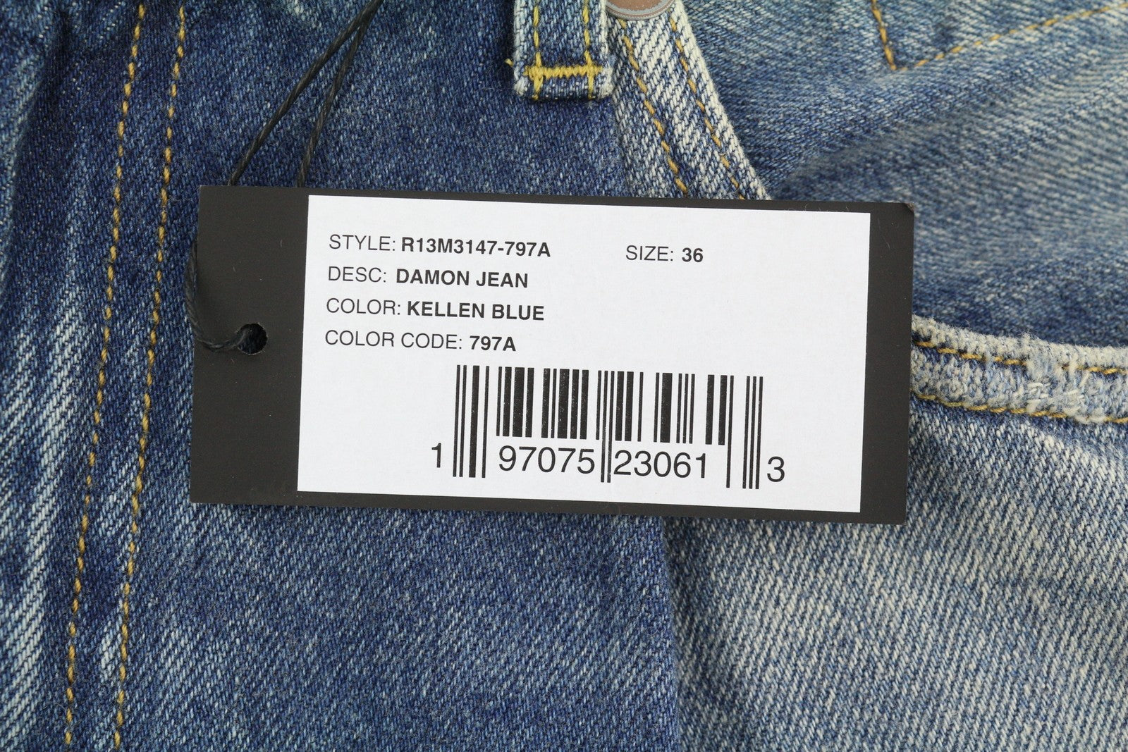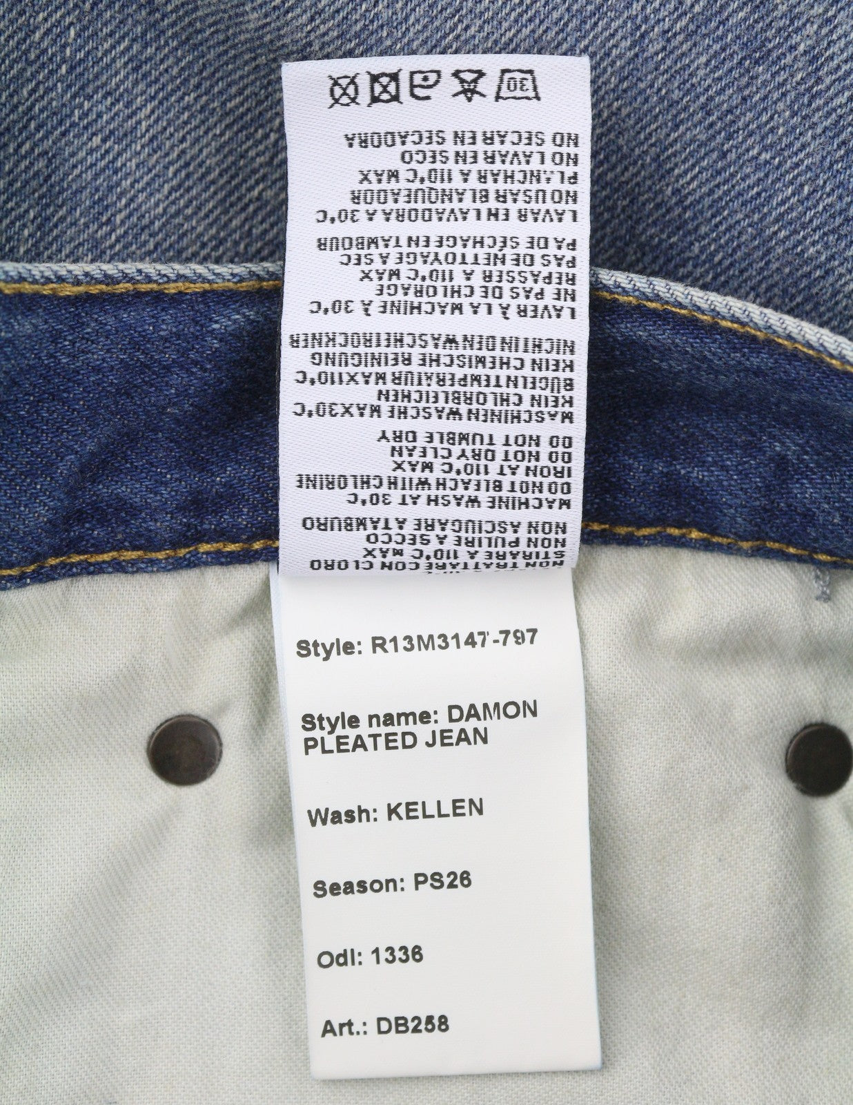 R13 Damon Pleated Women Jeans 36 Kellen Straight Whiskers Faded Blue Denim PS26
